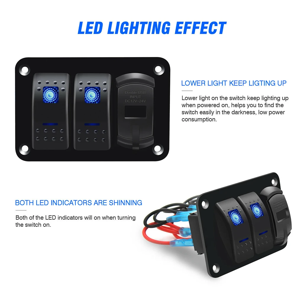 * 3 панели клавишных переключателей эти переключатели являются новым дизайном для повышения долговечности. Эти переключатели рассчитаны на 10000 циклов включения и выключения без сбоя. Защита от брызг лица панели, водонепроницаемость и анти-просачивание резиновое кольцо. Синий светодиодный светильник, водонепроницаемая панель.