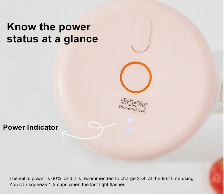 Первоначальная мощность составляет 60%, а также рекомендуется заряжать 2,5 h в первый раз с помощью можно выжать 1-2 чашки в тех случаях, когда последний светильник вспышки