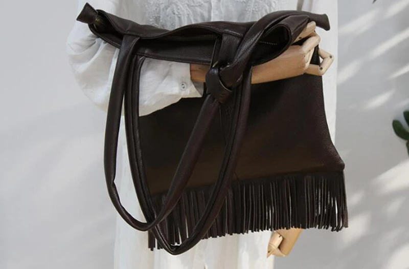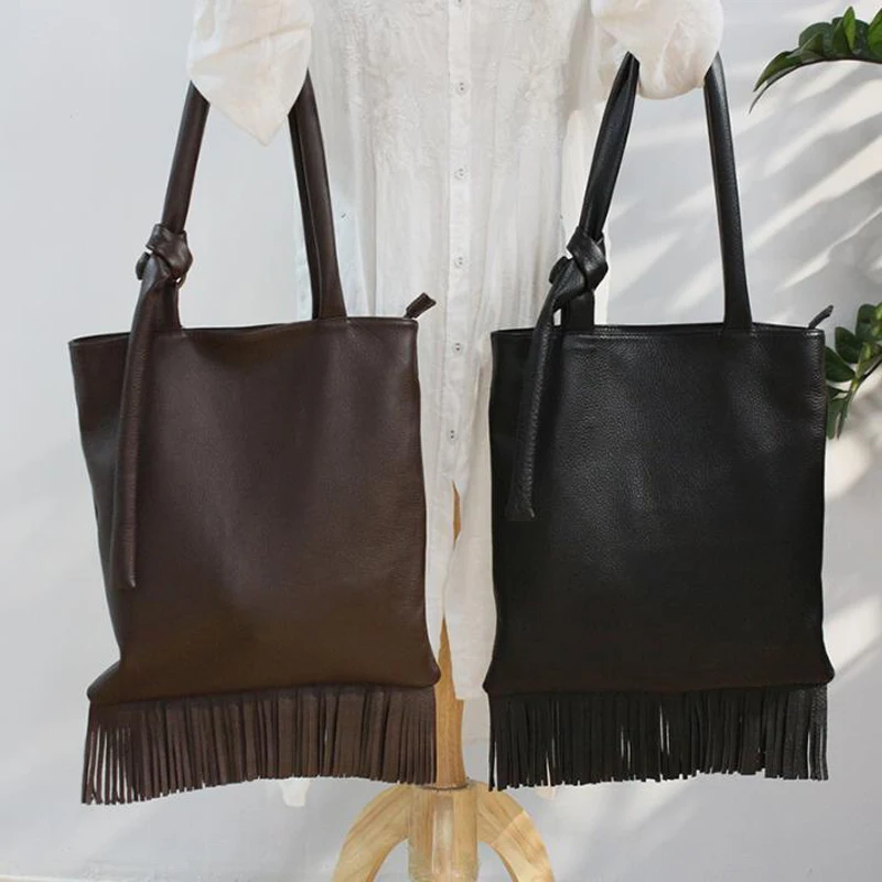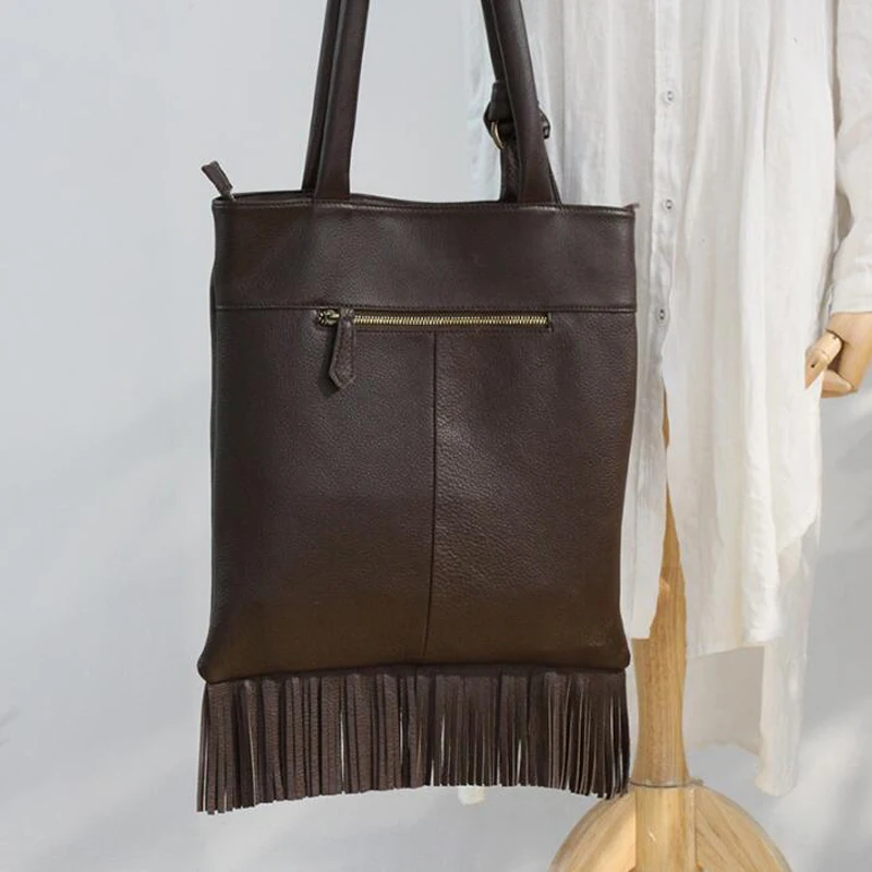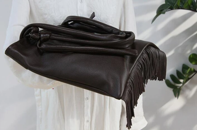 Женская сумка через плечо из натуральной кожи с кисточками, трендовая сумка на ремне, большая сумка из воловьей кожи с бахромой, сумка через плечо