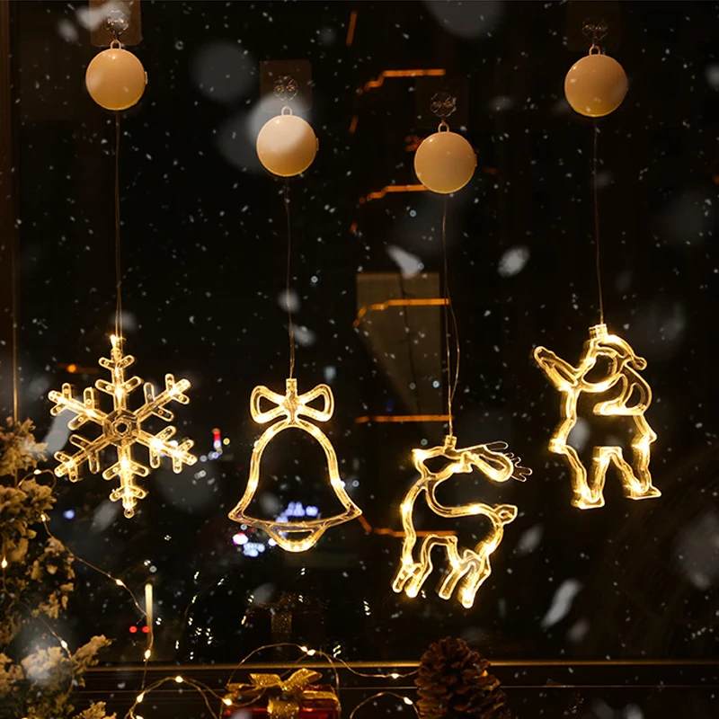 1. Красивые сказочные огни в форме Санта-Клауса, лося, елки, снежинки и колокольчика.