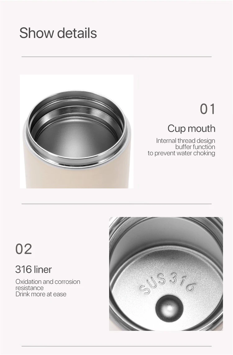 3. Изготовлен из нержавеющей стали 316, двухслойный вакуумный дизайн, безопасный, не содержит бисфенола А и экологически чистый, без запаха и легко чистится. В течение 12 часов можно хранить горячую или холодную воду.