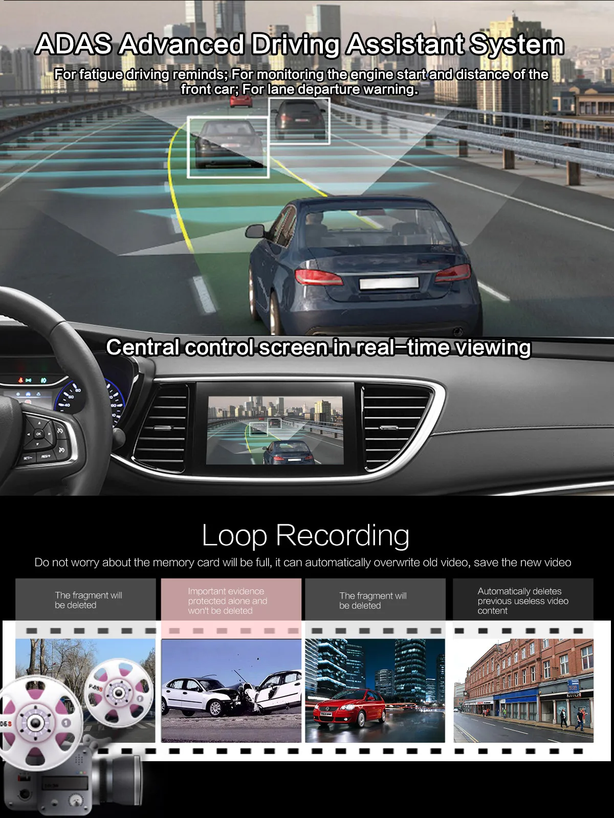 Зарядных порта USB для автомобиля камера