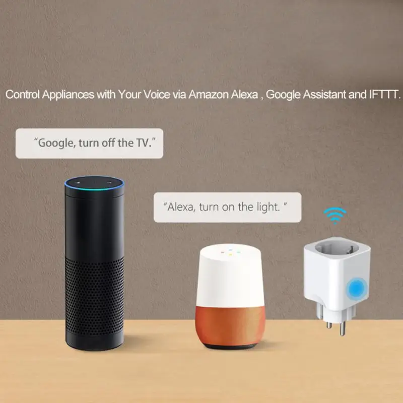 Умная розетка работает с устройствами Alexa, Google Assistant и IFTTT для легкого голосового управления.