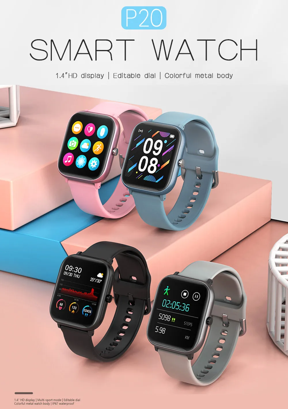 P20 спортивные Смарт-часы фитнес-Браслет Смарт-браслет с сенсорным экраном IP67 модные бизнес изысканные подарочные часы SM