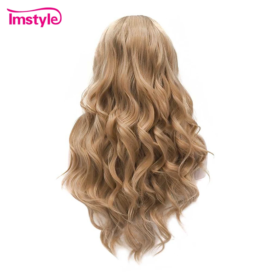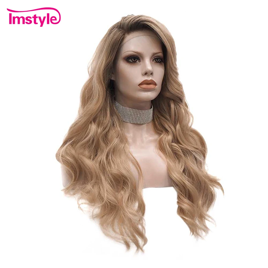 Imstyle оранжевые парики Волнистые Синтетические кружевные передние парики темные корни термостойкие волокна косплей парики для женщин