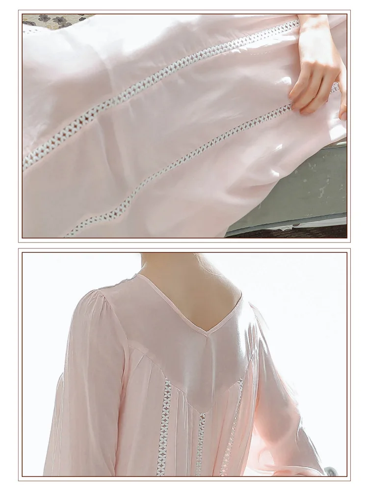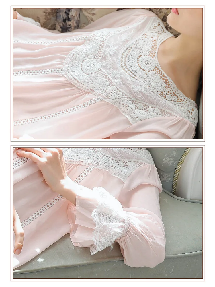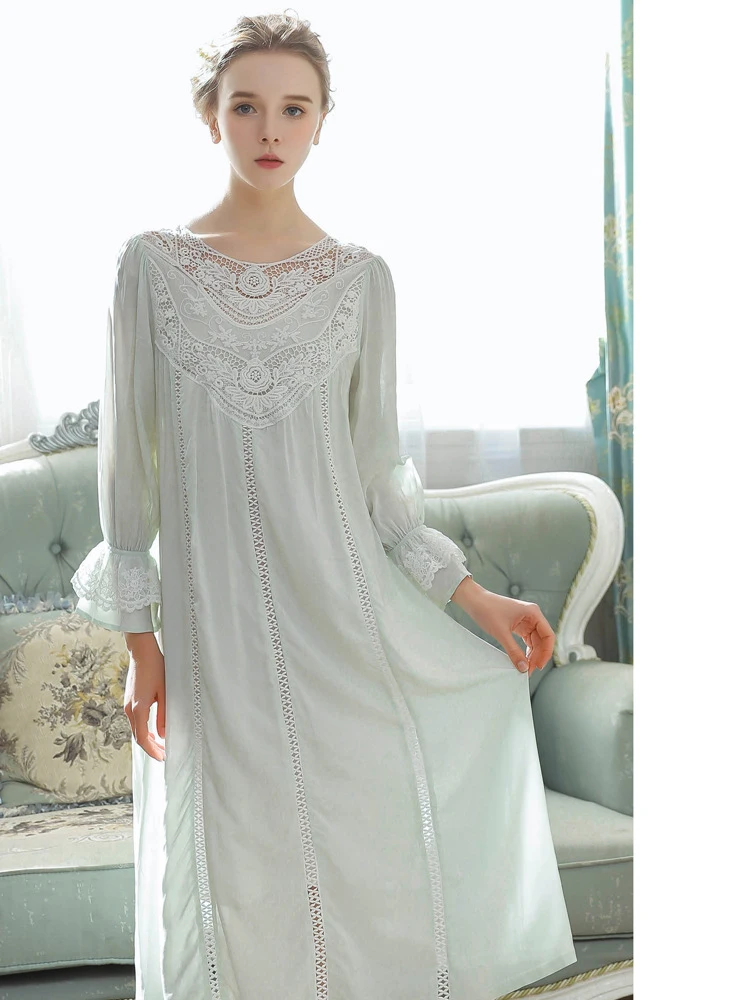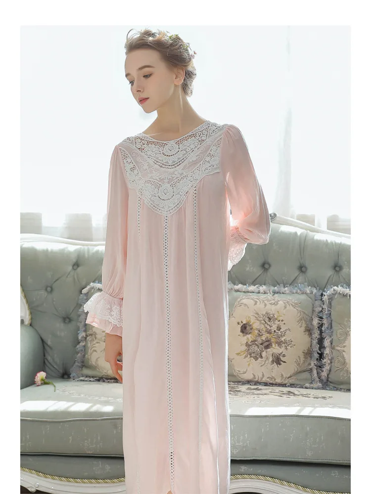 Пикантные Для женщин Дворцовый стиль рубашки одноцветное, из модала с кружевная ночная рубашка Повседневное длинная домашняя одежда
