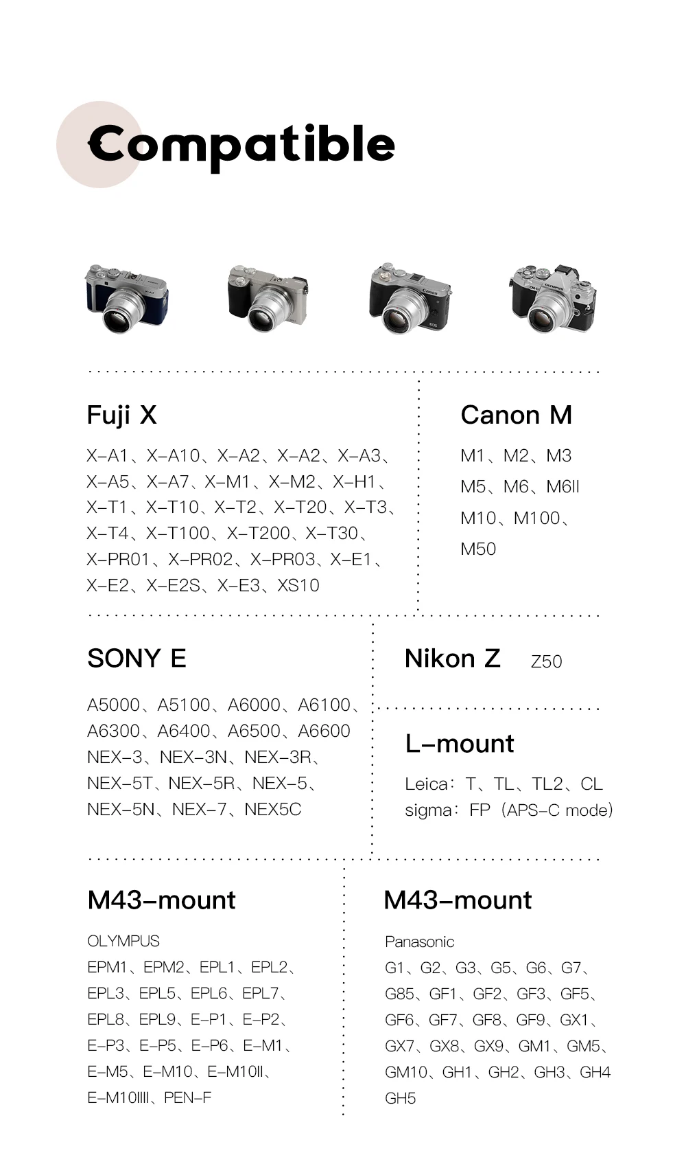 Для цифровой фотокамеры Fuji X Крепление Камера X-A10 X-A20 X-A3 X-A5 X-A7 X-M1 X-M2 X-H1 X-T10 X-T2 X-T20 X-T3 X-T30 X-T4 X-T100 X-T200 X-Pro1 X-Pro2 X-Pro3 X-E1 X-E2S X-E3 для цифрового фотоаппарата Panasonic макро 4/3 крепление Камера s как G100KGK-K G100VGK-K G100MGK-K G95GK G9LGK GF10KGK GF10XGK GX9GK GX9KGK GH5SGK G9GK GH5GK GH5LGK G85GK GX85GK для камеры Olympus макро 4/3, такой как E-M1X E-M1 Mark III E-M5 Mark III E-M10 Mark III S E-M10 Mark IV E-PL10 E-PL9 E-PL8 для Canon M Mount Camera Like M1 M2 M3 M6 M6II M10 M50 M100 M200 для Sony E Mount Camera Like A9 A7R IV A7R III A7R II A7S II A7III A7II A5000 A5100 A6000 A6100 A6300 A6400 A6500 A6600 NEX-3 NEX-5 MEX-6 NEX-7