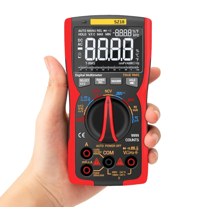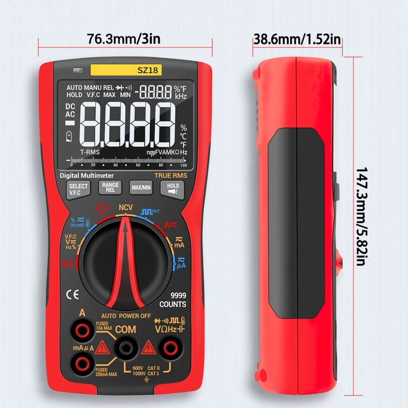 ANENG-SZ18-это автоматический цифровой мультиметр диапазона с 9999 словами с истинным эффективным значением. Инструмент полностью работает с тройным дисплеем.