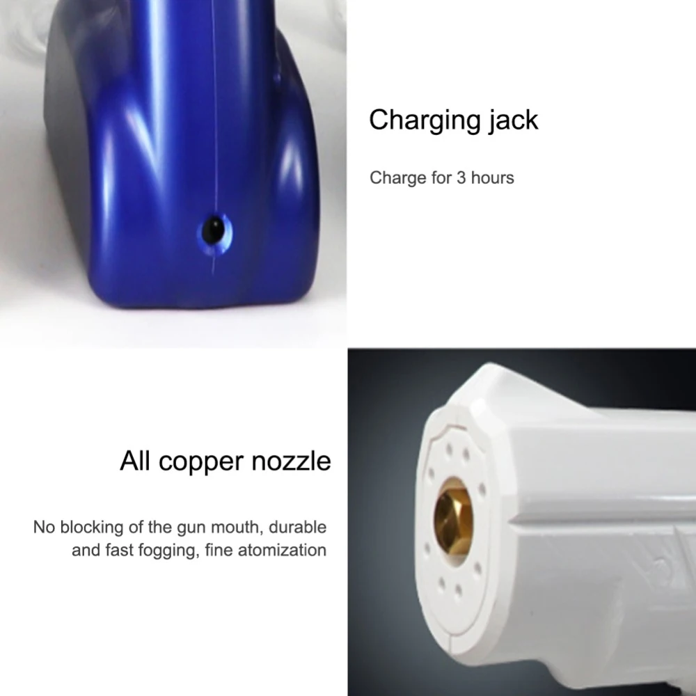 4. Перезаряжаемый дизайн: беспроводной электрофоггер с питанием от аккумулятора (аккумулятор не входит в комплект). 2 ч зарядки, непрерывное рабочее время до 3 ч (если вы используете аккумулятор 2600 мАч).