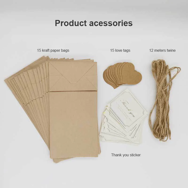 1 * Подарочный пакет из крафт-бумаги (15 * крафт-бумажный пакет, 15 * love tag, 15 * пеньковая веревка, 15 * наклейка)