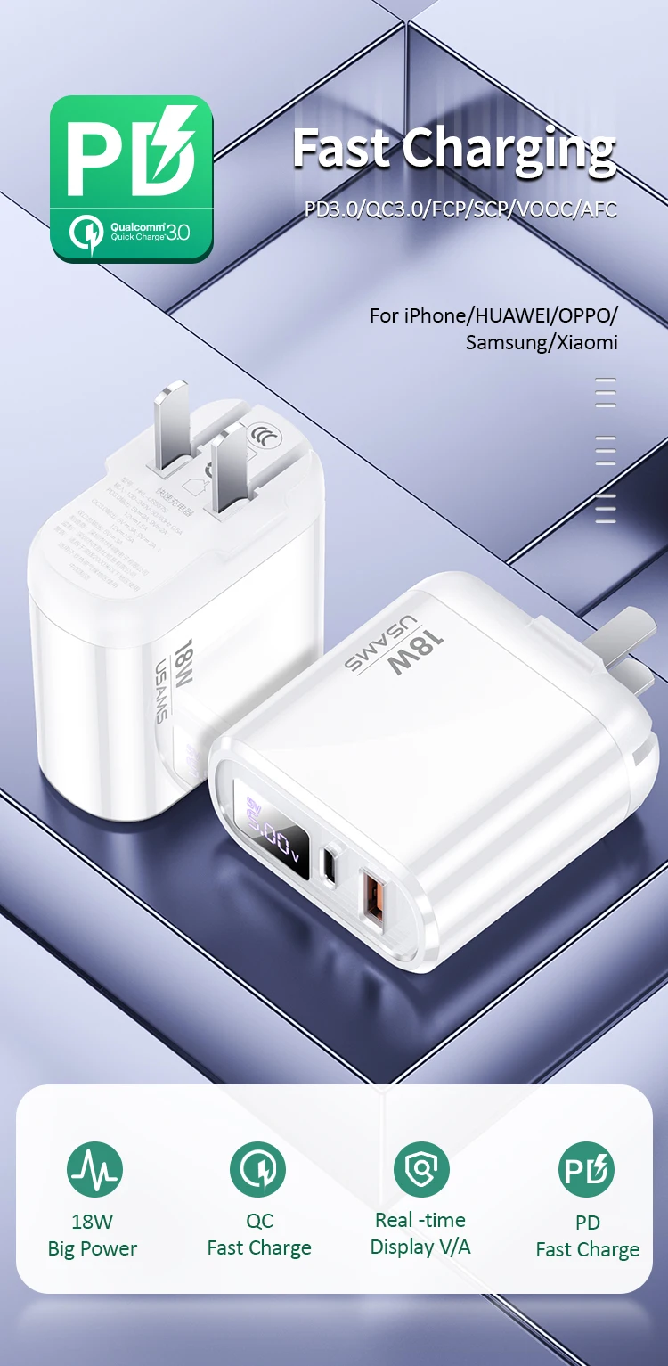 USAMS Быстрая зарядка QC3.0 PD3.0 PD быстрое зарядное устройство 18 Вт USB Type C для iPhone 11 8 7 6 Plus Xiaomi Samsung Huawei 5V 3A зарядное устройство для телефона