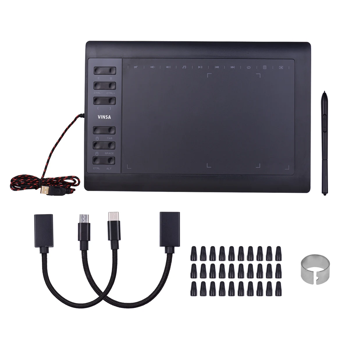 Профессиональный графический планшет:Графический планшет для рисования с активной областью 10x6 дюймов, обеспечивает вам достаточную творческую площадь. Разрешение 5080lpi и частота отчетов 233PPS, что позволяет сглаживать рисунок и показывать вам произведения искусства.
