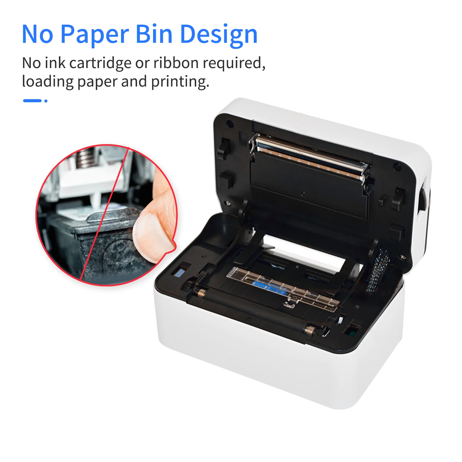 Чернильный картридж или лента не требуются, низкая стоимость эксплуатации, тепловая бумага легко купить.