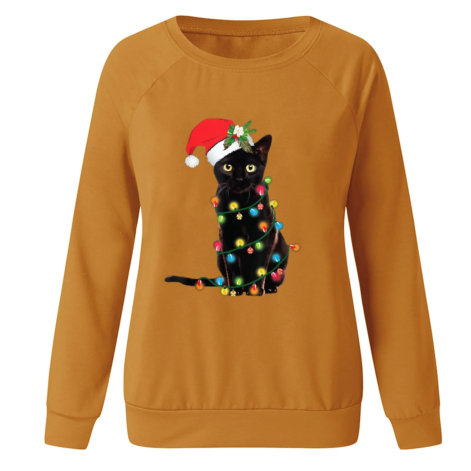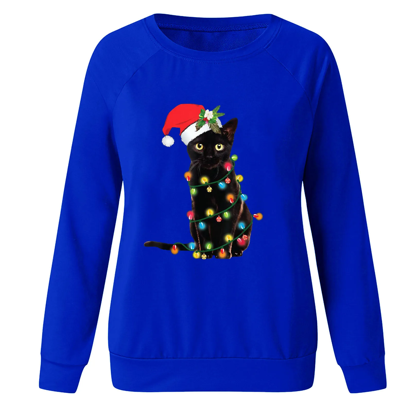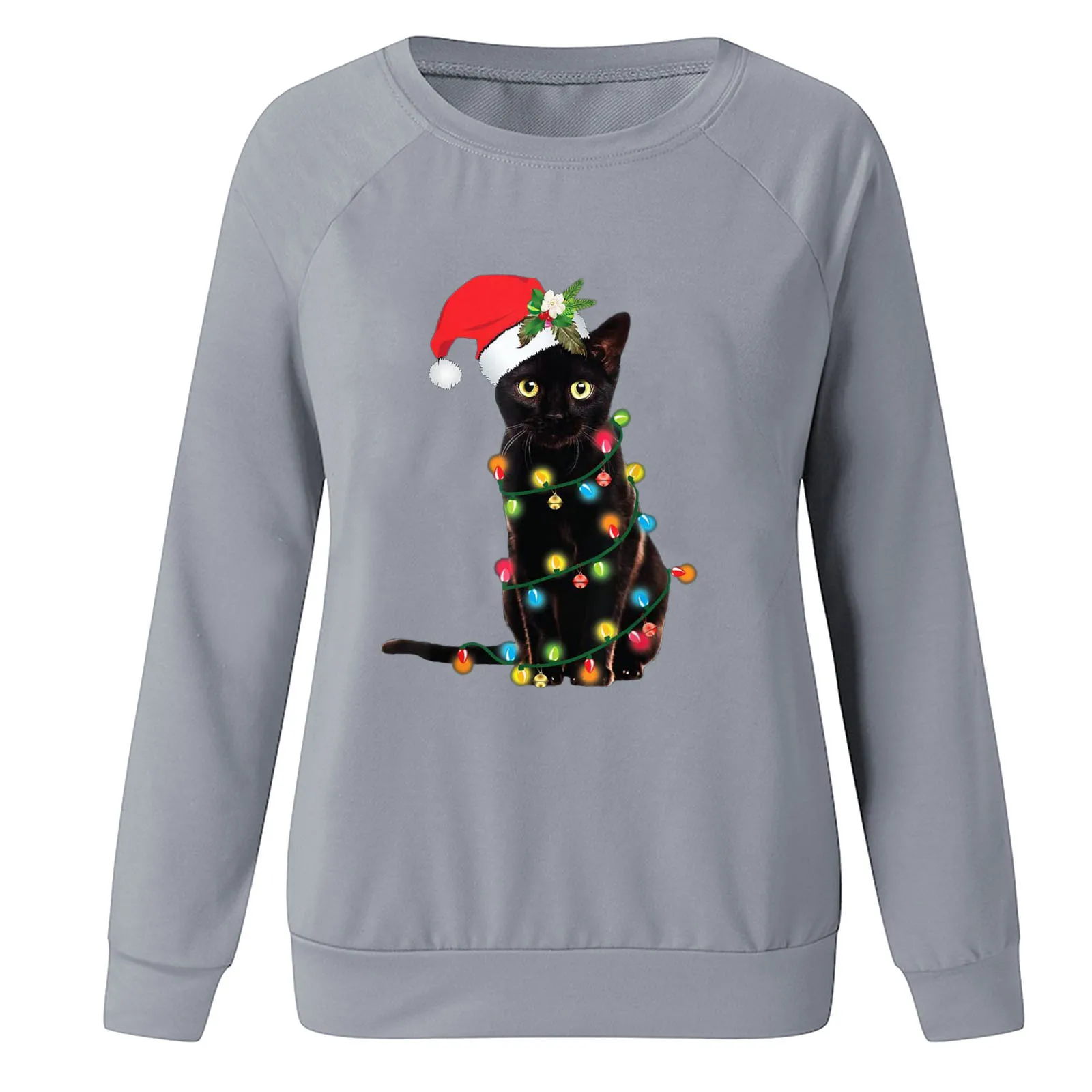 Женская Повседневная Блузка с круглым вырезом и принтом на Рождество