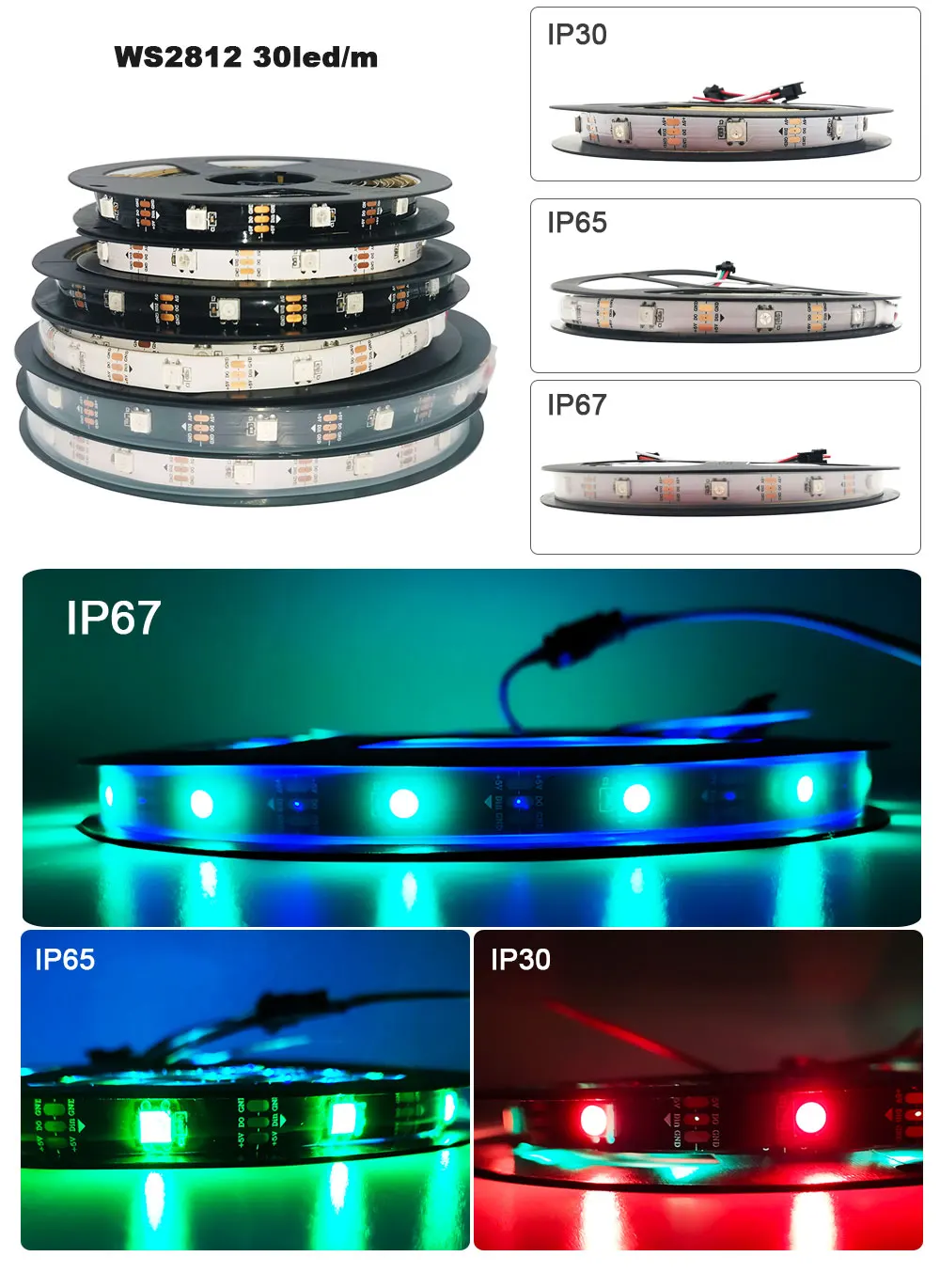 IP30: не водонепроницаемый IP65: водонепроницаемое силиконовое покрытие IP67: водонепроницаемый в силиконовой трубке