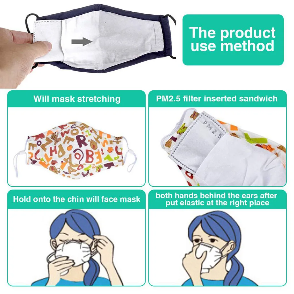 Предлагаем заменить флитеры каждый день использования для лучшего эффекта Идеально подходит для защиты рта и лица от пыли, дымки, микробов, аллергии, дыма, загрязнения, золы, пыльцы, садоводства, ремесел Есть трехмерное шитье, вы сформируете вставку фильтра в Размер Fliters: 100x70mmSuit для большинства детей маска для рта, двусторонняя со слотом fliterКак Применение: