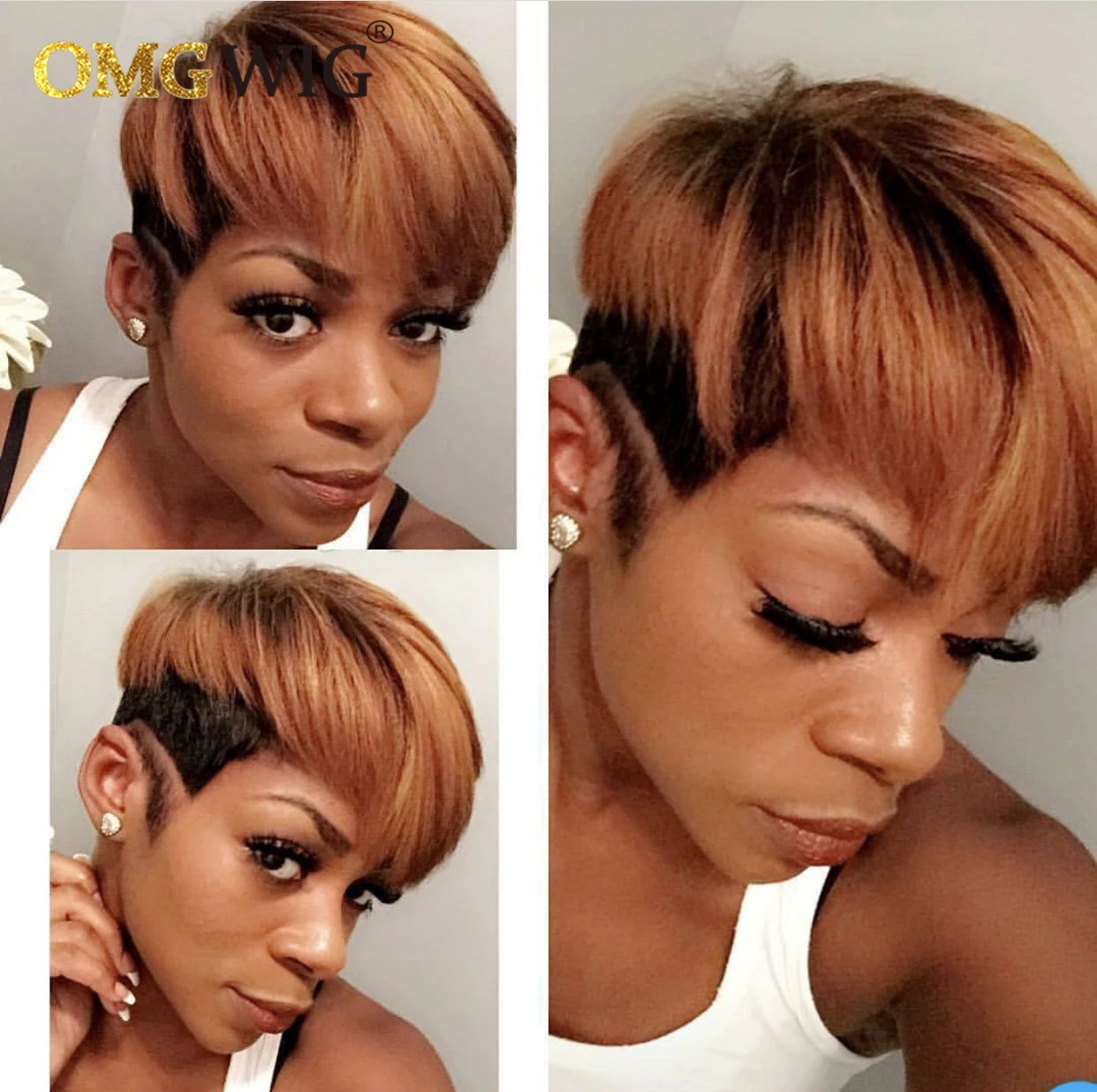 Медовый блонд бордовый 99J цвет Омбре Короткие Волнистые Боб пикси Cut не кружевные парики с челкой для черных женщин дешевые человеческие волосы парик
