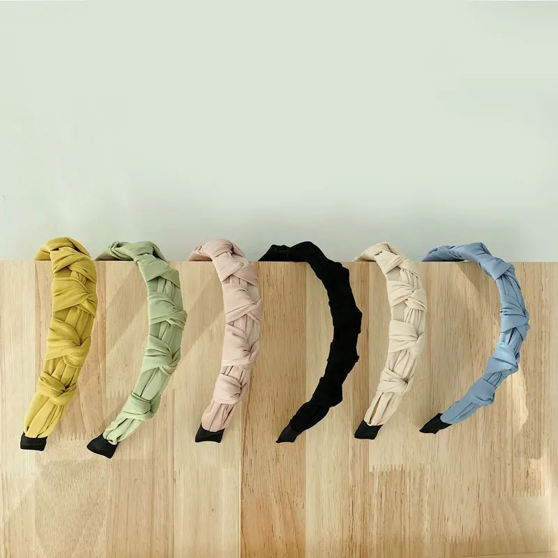 Обруч для волос с широкими полями, нескользящая плетеная повязка на голову, плиссированный однотонный обруч для волос, аксессуары для волос