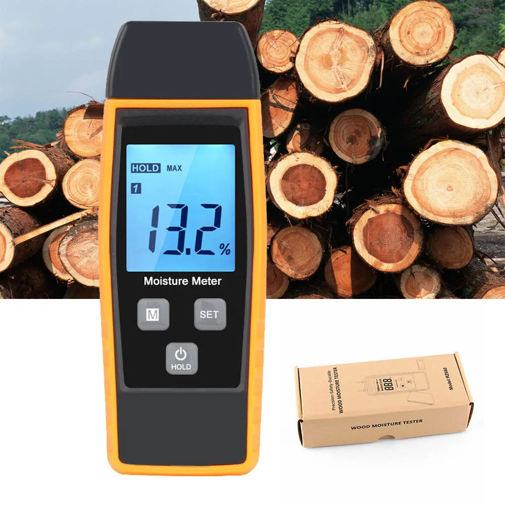 Этот инструмент является интеллектуальным дровяным влагометром с контактным контактом. Он может измерять содержание влаги в 4 типах древесины и других материалов.