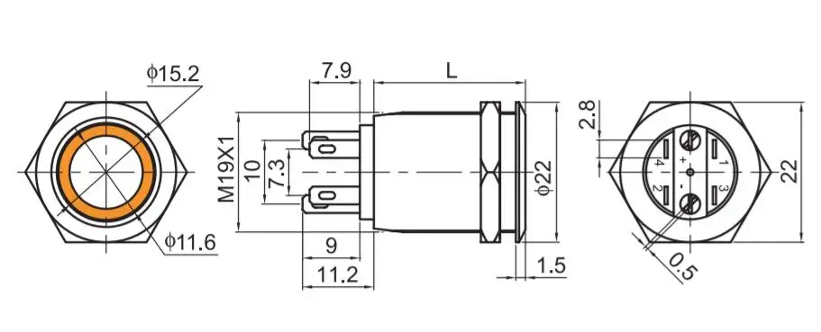 19 мм кнопочный переключатель 1NO1NC водонепроницаемый переключатель