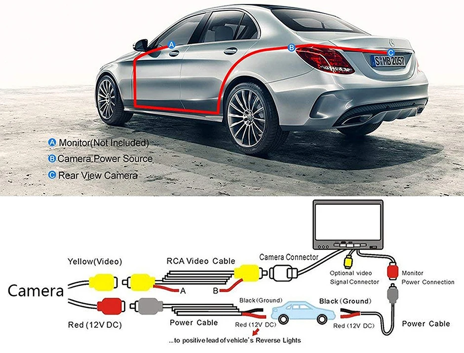 "A" Подключите Обратный Свет питания постоянного тока 12 В +.