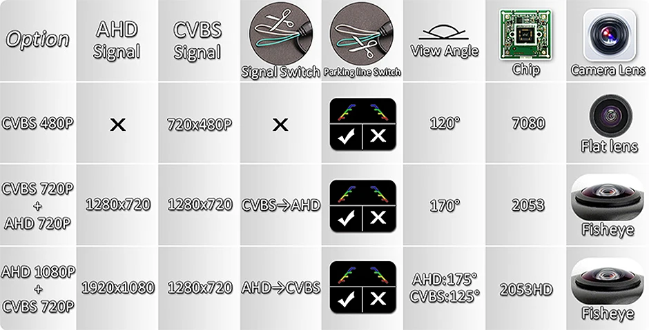 Внимание: согласно нашему опыту, некоторые дешевые головки Android имеют настройку программного обеспечения для AHD видеосигнала, но правда в том, что у них нет AHD чипов, поэтому не поддерживайте AHD 1080P. Если да, то Вы можете применить только видеосигнал CVBS. Мы рекомендуем купить камеру CVBS/AHD 720P. Это лучшая Совместимость для всех мониторов и android стерео-устройств.