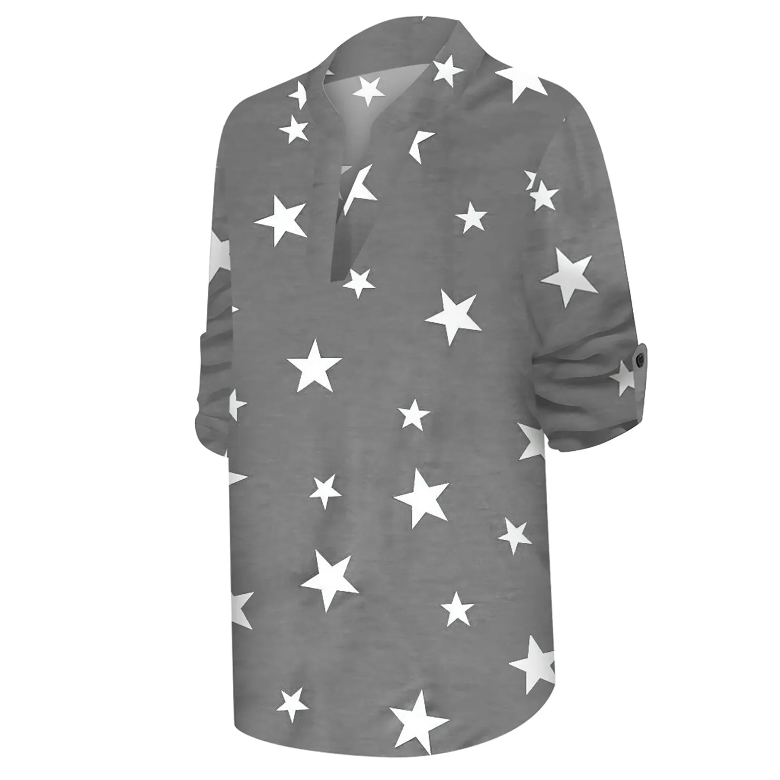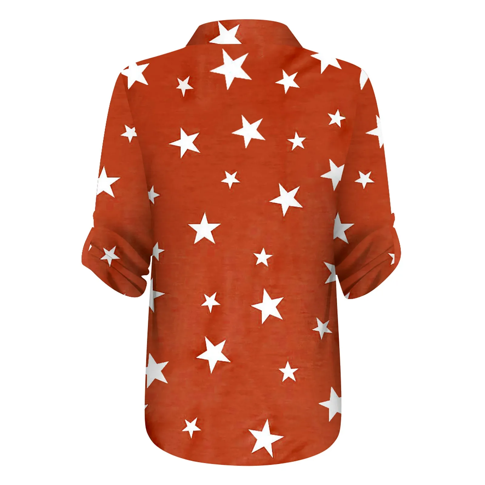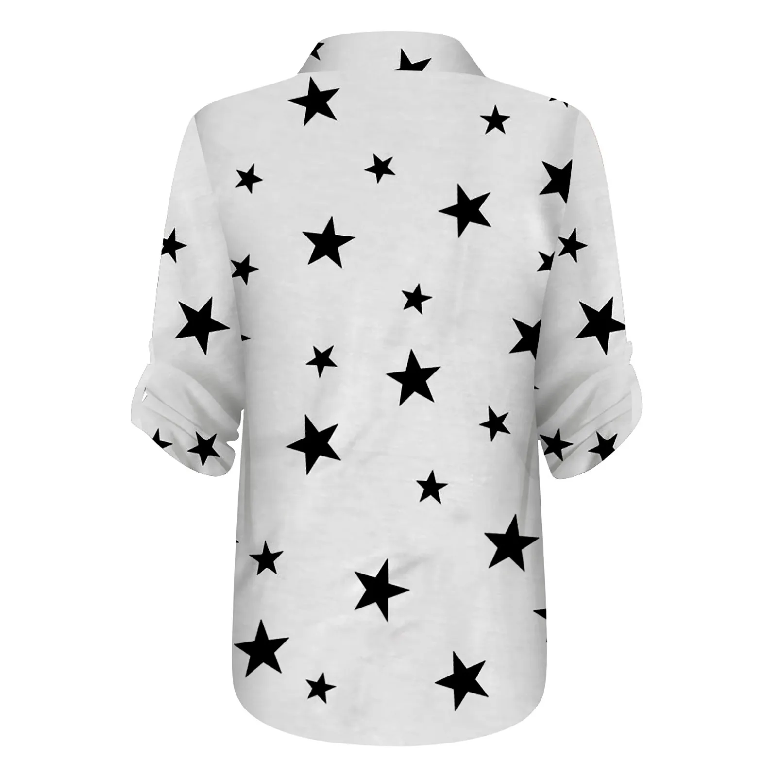Women Casual Cotton Long Sleeve Star Shirt Women's Slim Jacket Shirt Top