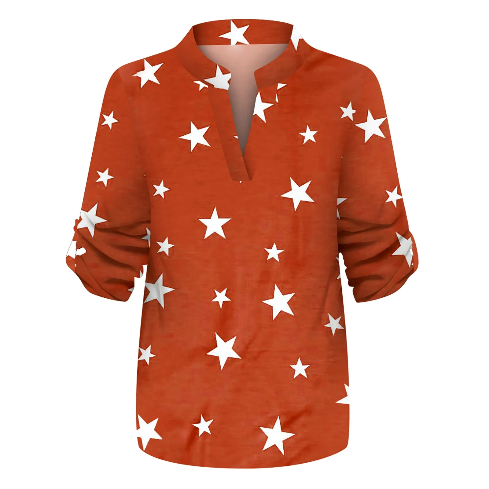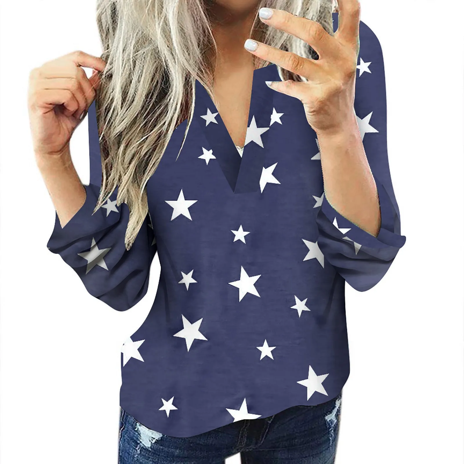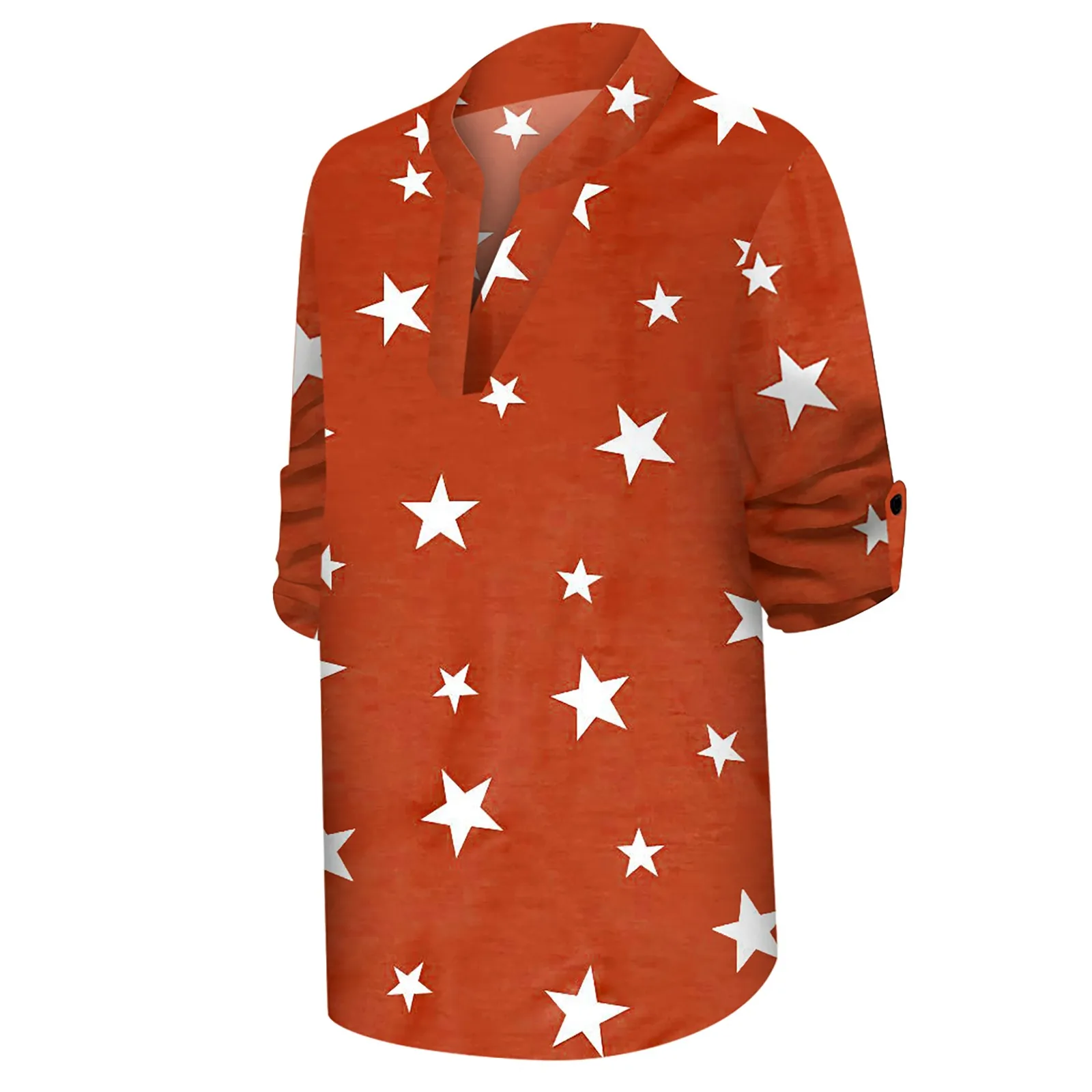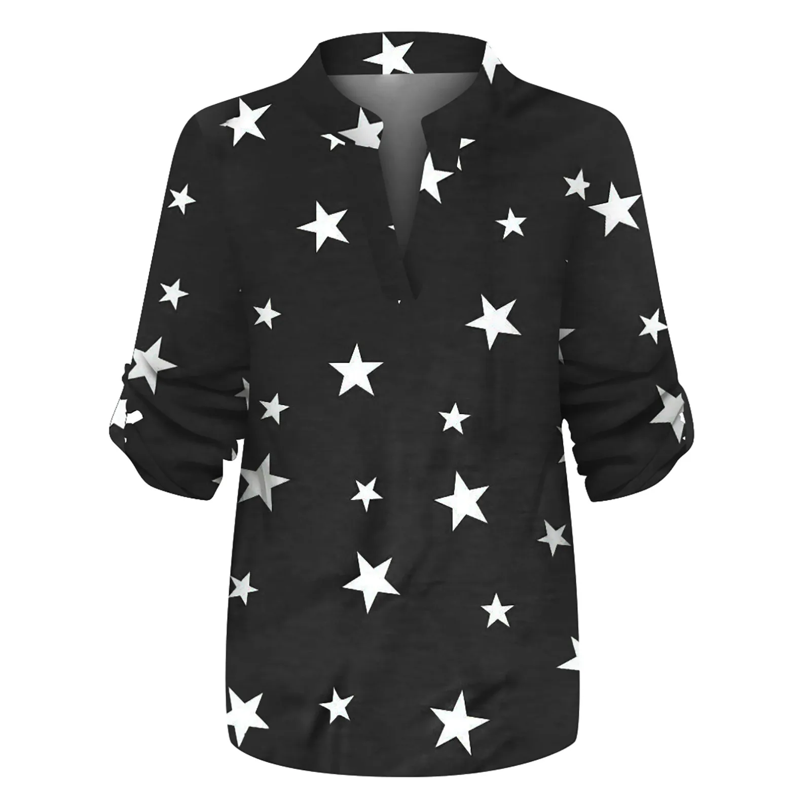 Women Casual Cotton Long Sleeve Star Shirt Women's Slim Jacket Shirt Top