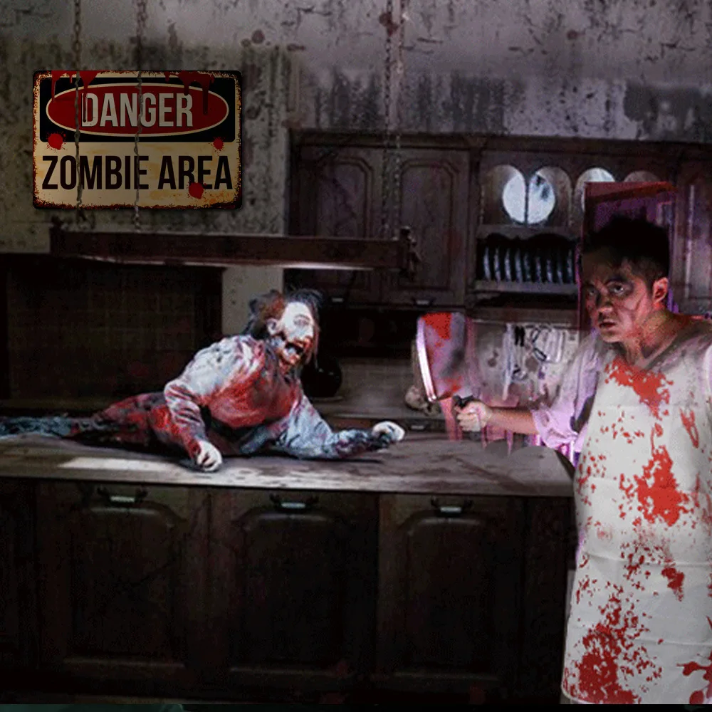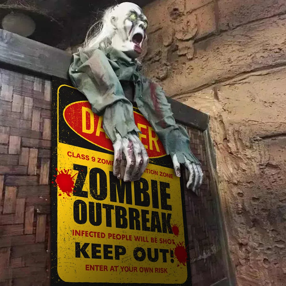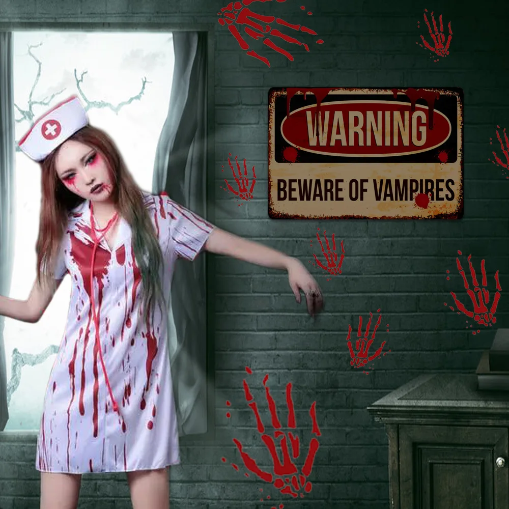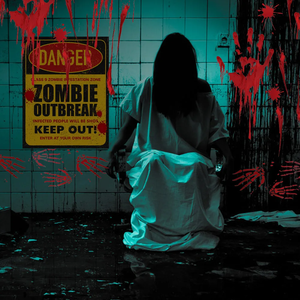 Halloween Warning Sign Sticker Self-adhesive Horror Wall Sticker Creative Party Holiday Decorative Decals