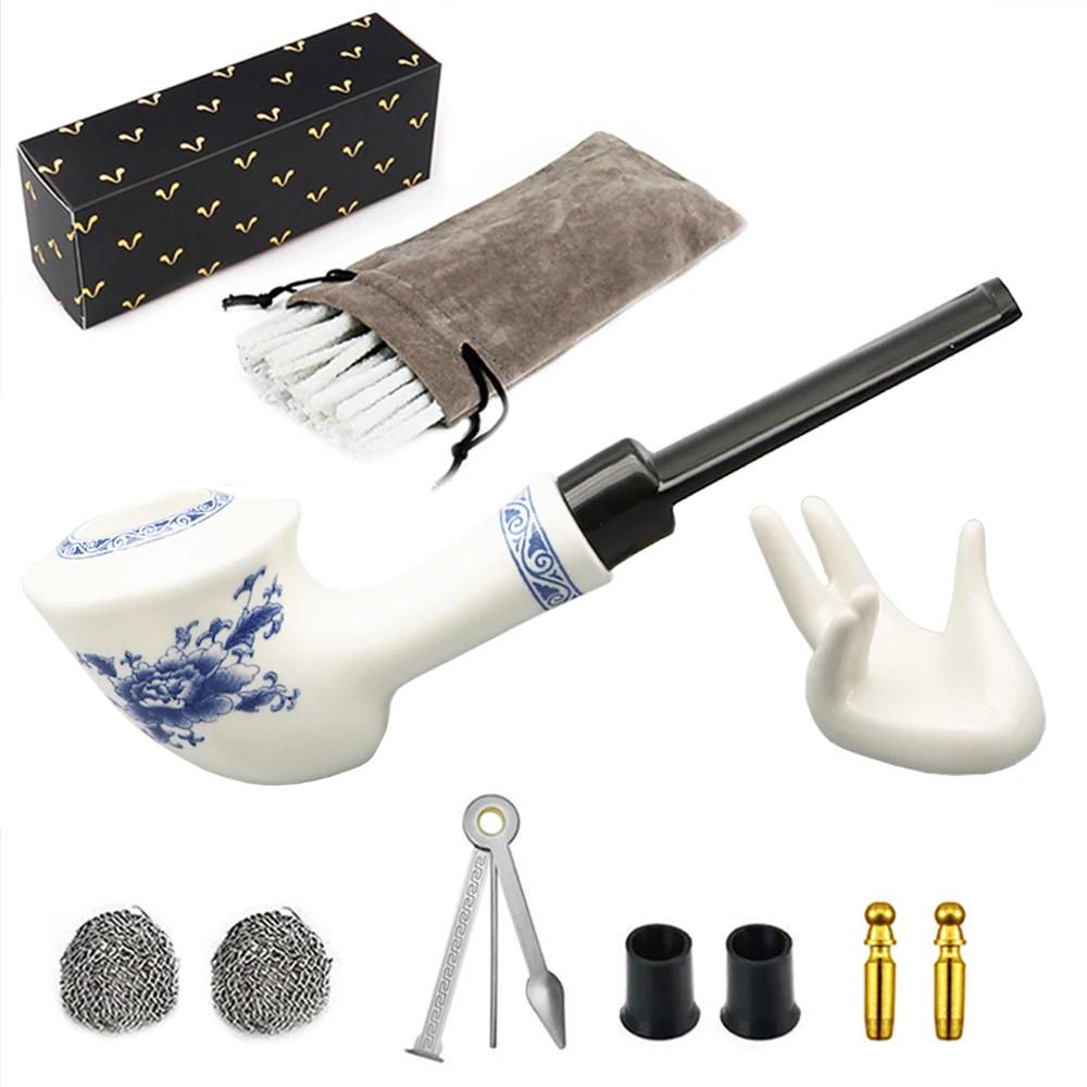 (Посылка в том числе) ▷Pipe -1 шт. керамическая трубка для курения ▷Holder -1 шт. керамический держатель для пальцев ▷Бесплатные аксессуары для курения труб -1 шт коробка мешок -1 шт. мешочек из фланелета -1 шт 3в1 многофункциональный нож -2 шт. сетка для сгорания -2 шт. 3 мм угольные фильтры. -10 шт. чистящий стержень