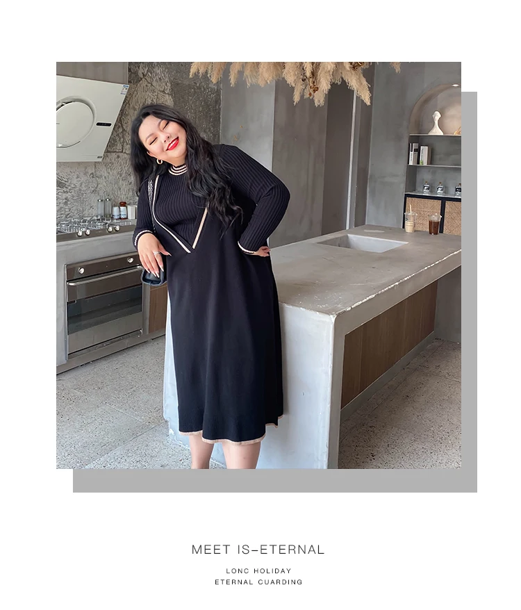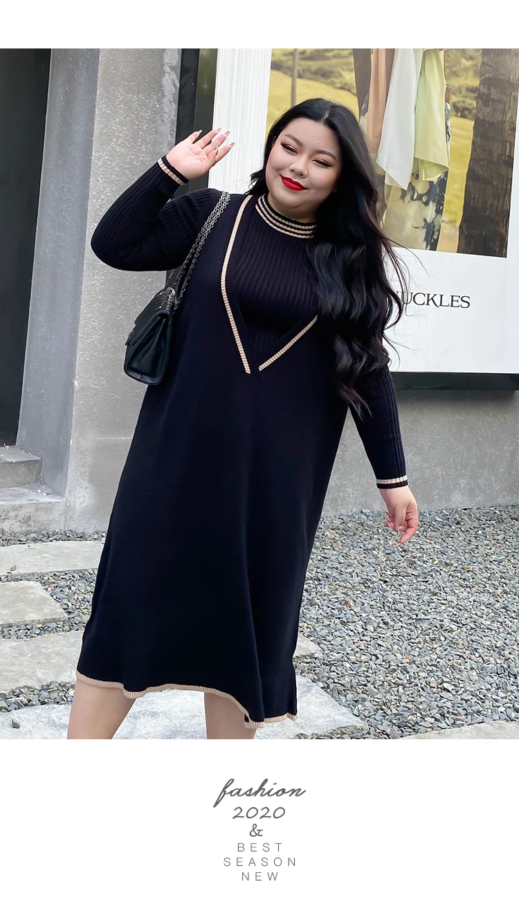 Женские трикотажные платья больших размеров, осенне-зимние свободные, новые, с v-образным вырезом, жилет, платья + джемпер, костюм из двух предметов, мода 2020