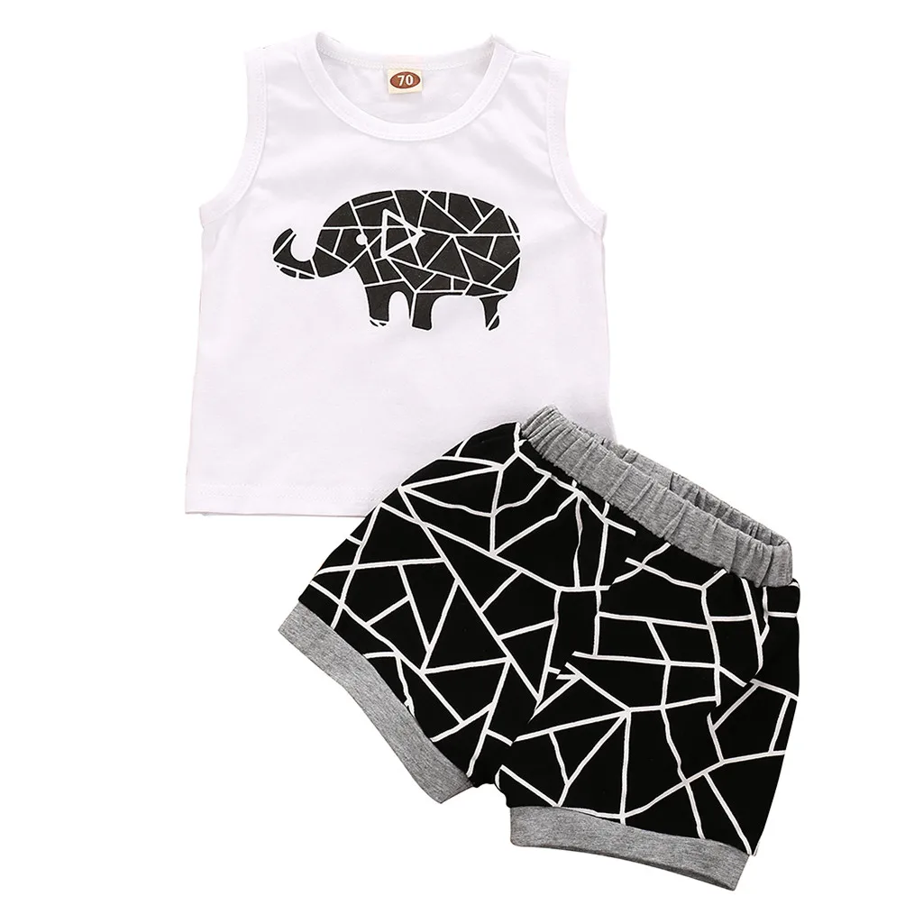 Детский жилет без рукавов С Рисунком Слона для маленьких мальчиков топы, шорты штаны Одежда, комплект