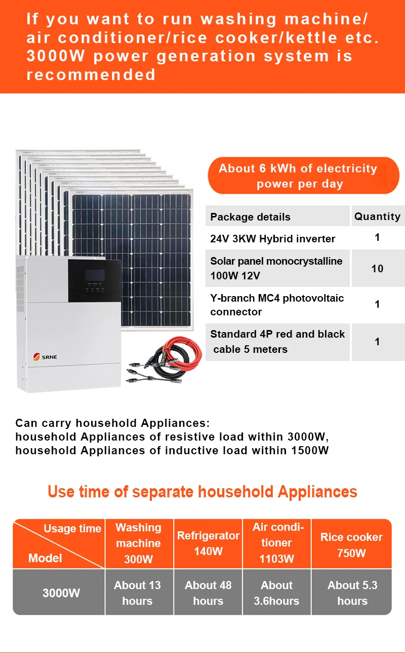 Если вы хотите запускать стиральную машину/кондиционер/рисоварку/чайник и т. д. рекомендуется система производства электроэнергии 3000 Вт