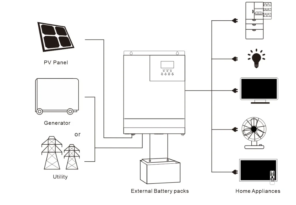 Полное цифровое напряжение и ток двойной замкнутый цикл управления, передовые технологии SPWM, выход чистой синусоидальной волны. ● Два режима вывода: обход сети и выход инвертора; Бесперебойный источник питания. ● Доступно в 4 режимах зарядки: только Солнечная, сетевая приоритетная, солнечная приоритетная и электрическая и солнечная гибридная зарядка. ● Передовая технология MPPT с эффективностью 99.9%. ● Разработан с ЖК-экраном и 3 светодиодный индикаторами для динамического отображения данных системы и рабочего состояния. ● Переключатель включения/выключения для управления выходом переменного тока. ● Режим энергосбережения позволяет уменьшить потери без нагрузки. ● Интеллектуальный вентилятор с переменной скоростью для эффективного рассеивания тепла и продления срока службы системы. ● Конструкция активации литиевой батареи, позволяющая получить доступ к свинцово-кислотной батарее и литиевой батарее. ● Всесторонняя защита 360 ° с рядом функций защиты. ● Полная защита, включая защиту от короткого замыкания, перенапряжения и защиты от напряжения, перегрузки Защита, обратная защита и т. Д.