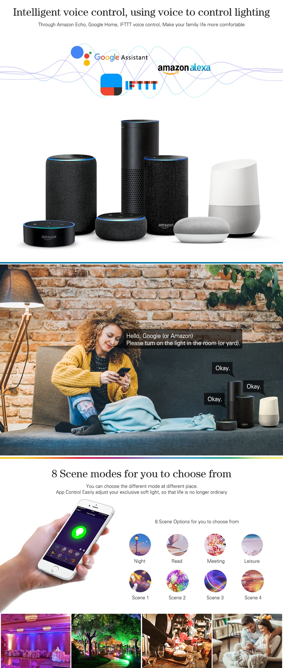 Умные напольные светильники Tuya APP работают с Google Assistant Amazon с регулировкой яркости и цветовой температуры