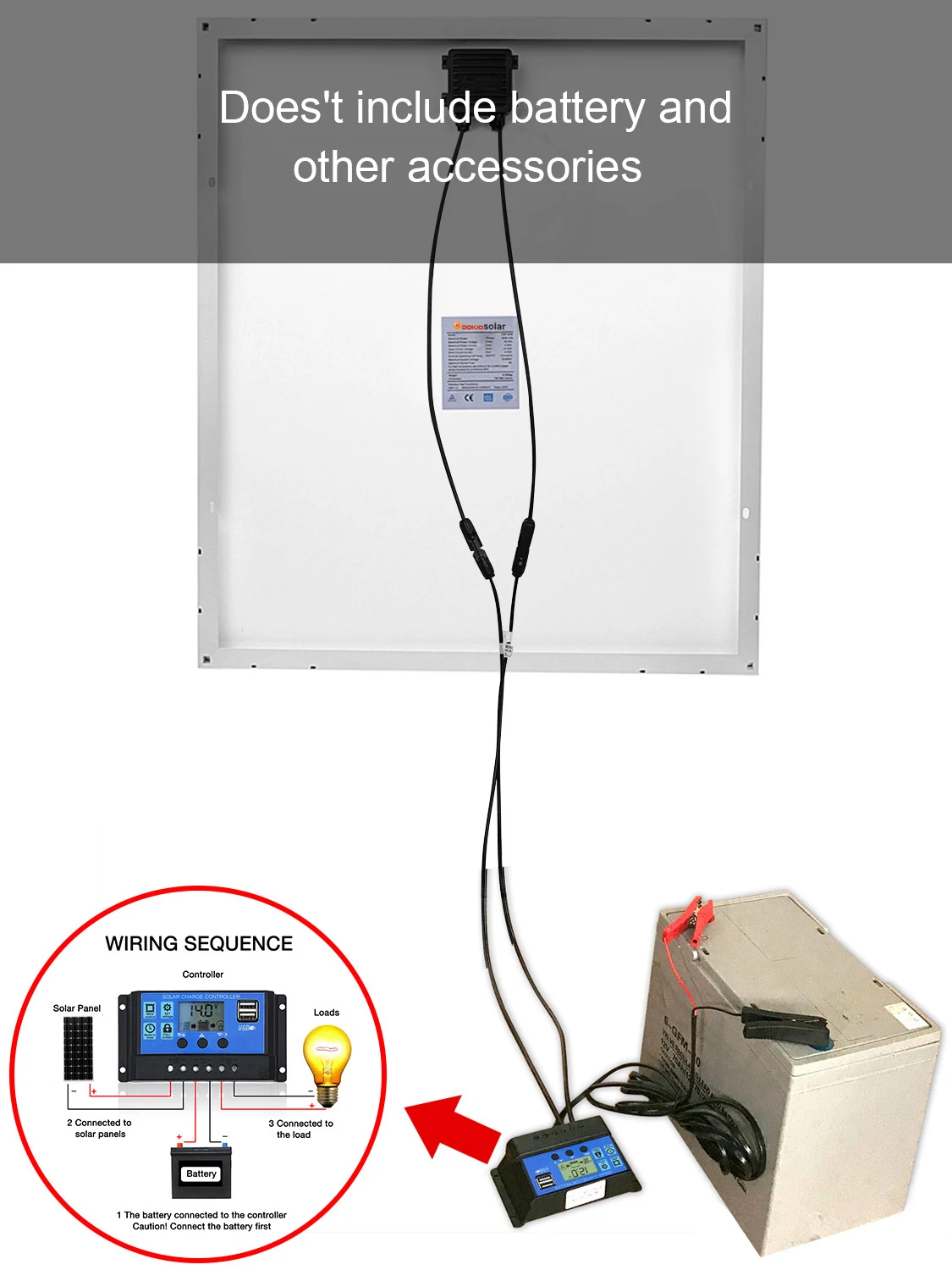 Максимальная мощность (Pmax): 60 Вт Материал: монокристаллический кремний Максимальное напряжение питания (Vmp): 18,00 в Максимальный ток мощности (Imp):3.33A Напряжение открытого замыкания (Voc): 22,50 в Ток короткого замыкания (Isc):3.58A Максимальное напряжение системы: DC1000V Максимальная серия предохранителей: 15A Номинальная рабочая температура ячейки.(NOCT): от-45 до 80 ℃ Вес посылки: 7,8 кг Посылка Dinensions: 66*71*4 см Размеры: 625*660*25 мм Посылка: 60 Вт солнечная панель * 1 10а ШИМ контроллер * 1 (Приведенные выше данные основаны на лабораторной стандартной испытательной среде) Для полевых соединений Используйте minimun No.12AWG медные провода изолированные для минимального 90 ℃ Стандартные условия испытаний: AM = 1,5 излучения = 1000 Вт/м2 Темп. = 25 ℃ (Размер измеряется вручную, и есть определенная погрешность.) Контроллер поддерживает свинцово-кислотные, литиевые ионы и батареи LiFePO4. Контроллер не может использоваться для тестирования солнечных панелей. При достаточном количестве условий на светильник следует использовать мультиметр для испытания без нагрузки.