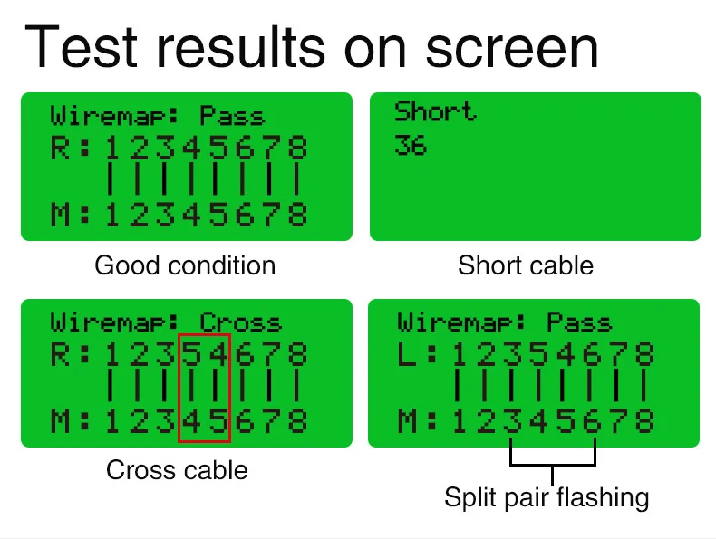 3. Проверьте ошибку проводки в 5E, 6E, коаксиальный кабель, такой как открытая цепь, короткое замыкание, перемычка, обратное соединение.