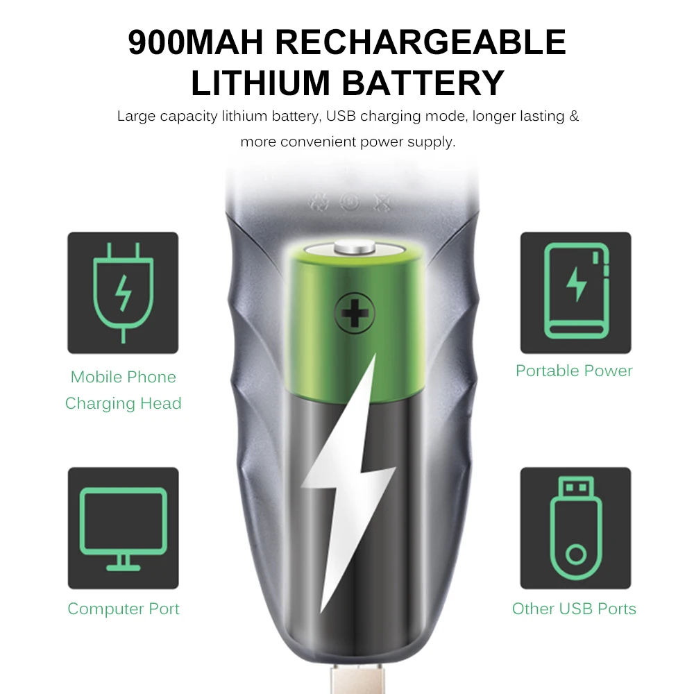 -Перезаряжаемая литиевая батарея 900 мА · ч: литиевая батарея большой емкости, режим зарядки USB, более длительный и более удобный источник питания.