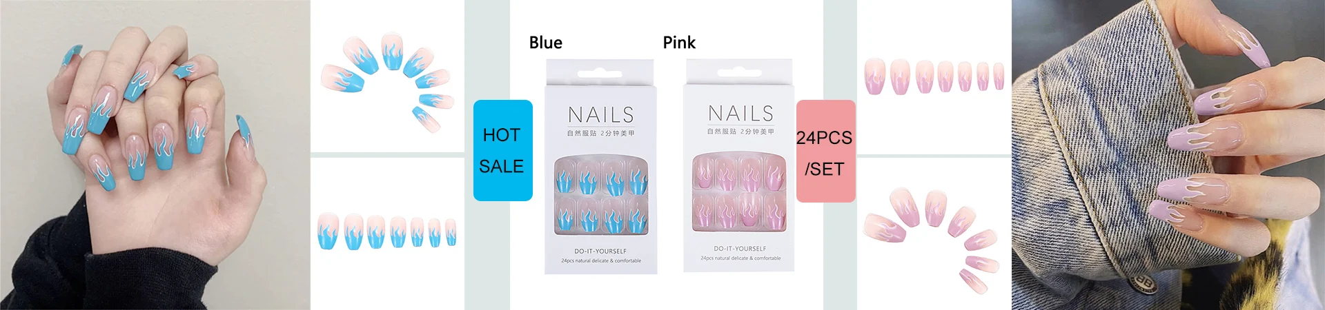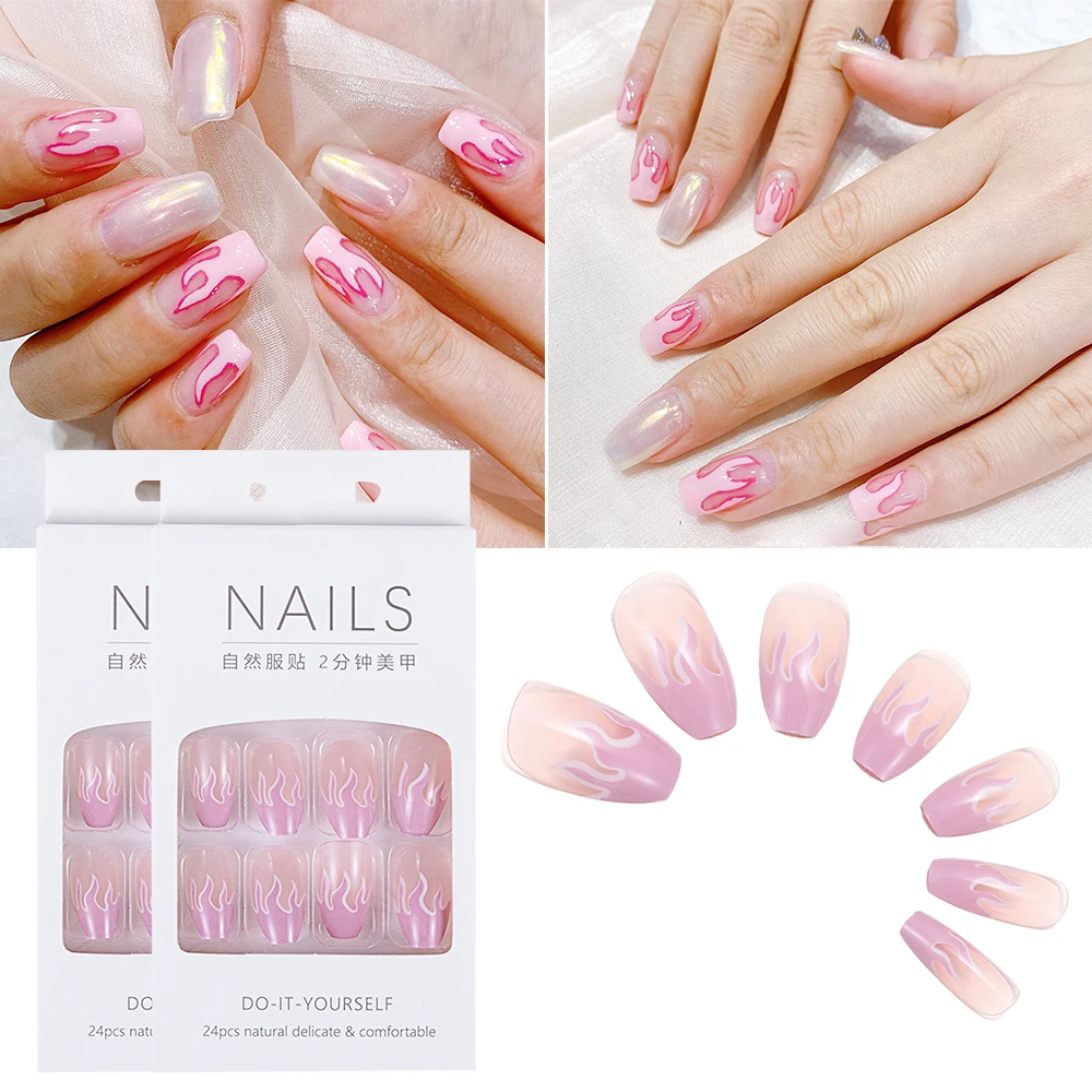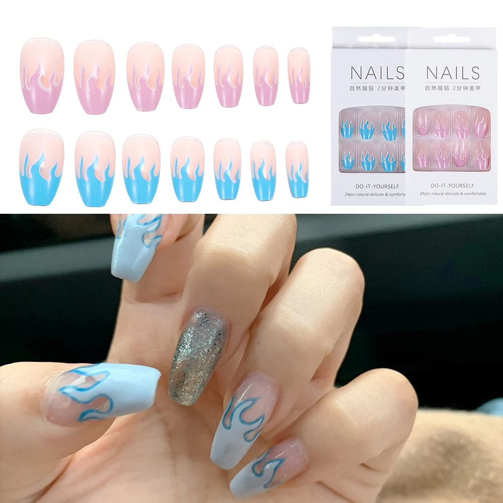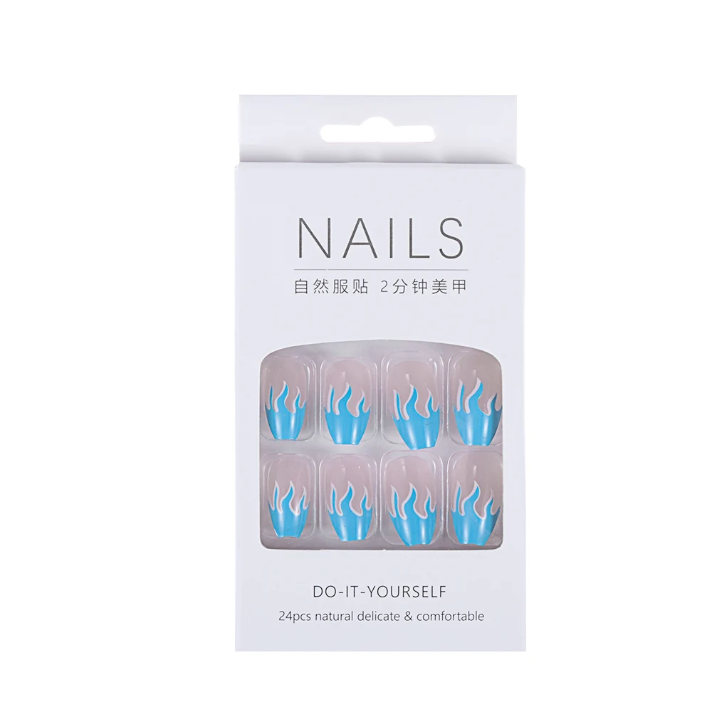 100% новый и высокое качество Тип: Полное покрытие для ногтей Цвет: синий/фиолетовый Размер: полный размер Качество: 24 шт. Посылка включает в себя: 24 шт./пакет накладные ногти + 1 шт. клей