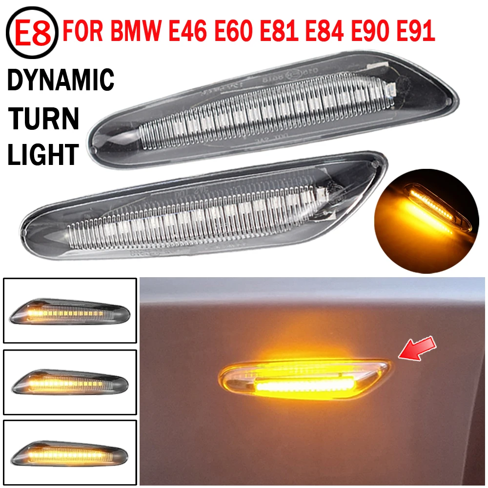 2 шт. светодиодный динамический боковой маркер указатель поворота светильник индикатор мигалка сигнальная лампа для BMW E90 E91 E92 E93 E60 E87 E82 E46