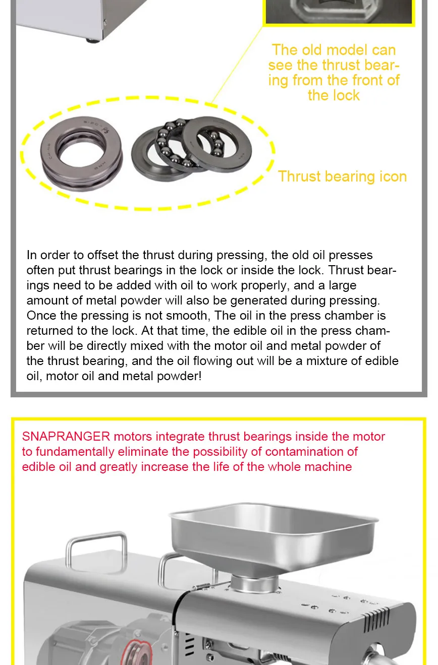 Машина для холодного прессования масла, автоматическая машина из нержавеющей стали для холодного отжима масла, экстрактор масла семян подсолнечника, масляный пресс Пожалуйста, предварительно Нагрейте машину более 20 минут, а затем сделайте масло. Особенности Это одна многофункциональная домашняя машина для прессования масла (машина для холодного пресса), вы также можете использовать ее для малого бизнеса. Вы можете использовать эту машину для прессования практически всех видов семян, таких как миндаль, аргановое зерно, черный тмин, семена камелии, семена канолы (рапса), семена Кастора, семена ЧИА, Семена хлопка, зародыши кукурузы, пищевая фиолетовая Перилла, семена льна (лен Абердин), семена травы, семена конопли, семена ятрофы, семена жожоба, семя киви, семена Моринги, семена нима, семена окры, арахис, перец (сухой), ядро кедрового ореха, семена платиклади, семена колючей золы, семена тыквы, семена шиповника, Семена сафлора, шизандра, кунжут (черный кунжут и белый кунжут), соя, семена подсолнечника, орех и орехи макадамии. Если вы хотите использовать его для других семян, пожалуйста, свяжитесь с нами. Высокая скорость извлечения масла, вы можете получить 400 г масла из арахиса 1000 г. Простота в эксплуатации (руководство на английском языке) и может быть непрерывной работой без вздутия или перегрева. Мини-пространство и низкий уровень шума. Длительный срок службы, более 10 лет для домашнего использования. AC110V/60Hz, 220V/50Hz или 220V/60Hz доступен с штепсельной вилкой Великобритании/США/Австралии/ЕС