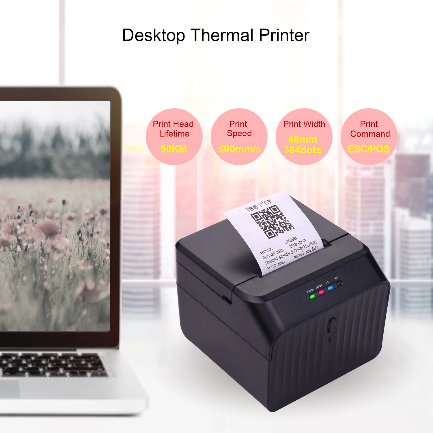 Термальный принтер, который может получить принтер или счет, поддерживает 58 мм ширину бумаги, 48 мм эффективную ширину печати.