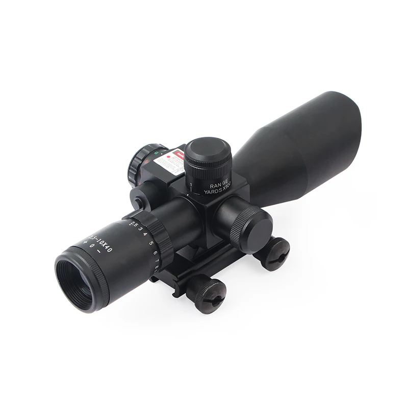 Название продукта: тактический 2,5-10X40 прицел w/красный лазер Размеры: 8,5 "(длина) x3.7" (ширина) x3 "(высота) Вес: 980 г Поле зрения: без ограничений Тип сетки: круглая точка, крест, 10 Моа и 3 МОА Цвет: черный Увеличение: 2.5x-10x Диаметр объектива: 40 мм Красный контроль яркости: 5 уровней/Зеленый: 5 уровней Тип сетки: мил-точка Выходной зрачок: 16 мм @ 2.5x 4 мм @ 10x вид 100 ярдов 32,5 '@ 2.5x-8,9' @ 10x Рельеф глаз 101,6 мм @ 2,5x76,2 мм @ 10x Частота лазера: 532 нм Расстояние достижения лазера: 100 ярдов Питание 1 x CR2032 (подсветка) (батарея не входит в комплект) 3 x LR1130 (лазер) (батарея не входит в комплект) Подходит для рельсов Пикатинни или Вивера 20 мм