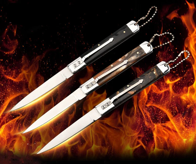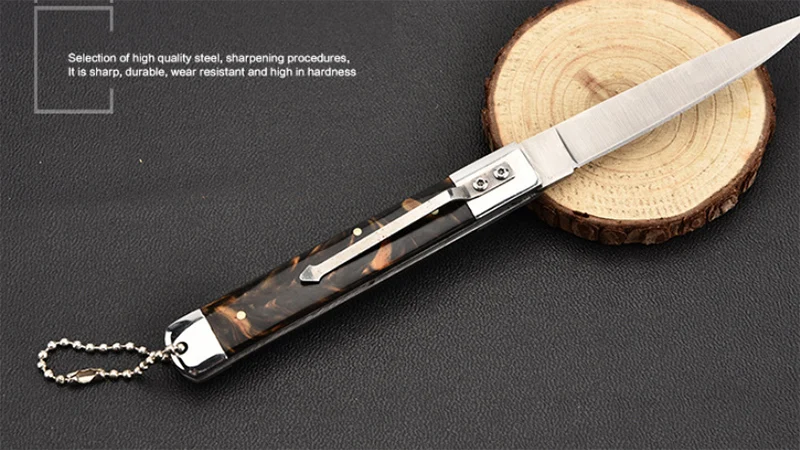 Free shipping Very Sharp Small Folding Knife Pocket Knife Large Stiletto Tactical Hunting Knife wood Handle Outdoor DEC Tools