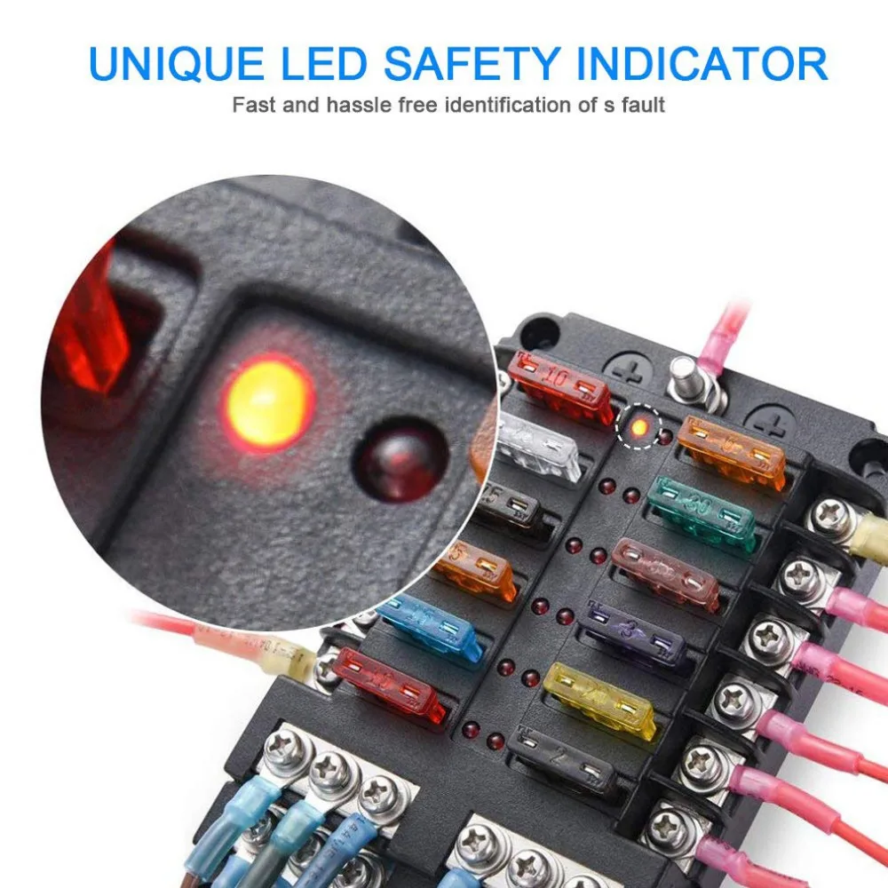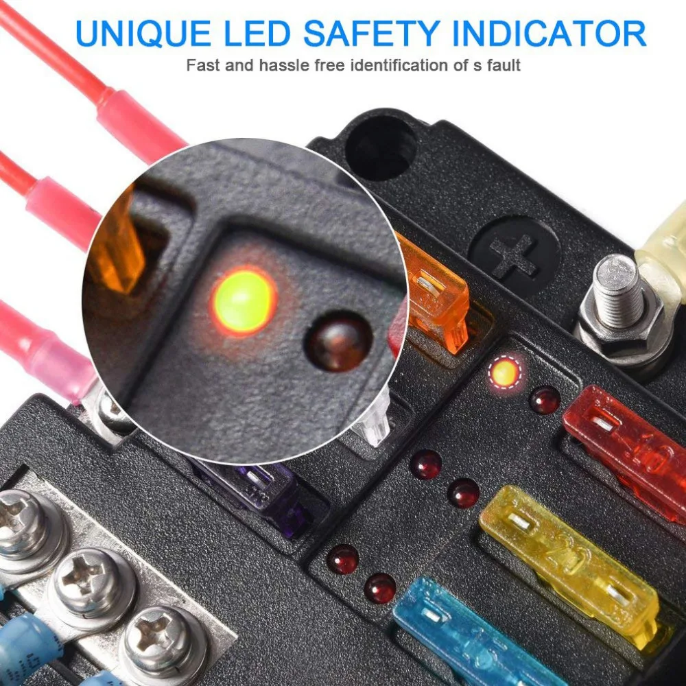 2. Светодиодный индикатор: Красный светодиодный предупреждающий светильник будет светильник решать немедленно в тех случаях, когда соответствующий предохранитель выдувка стекла происходила. Это безопасно и легко для вас, чтобы проверить и заменить выдувный предохранитель.