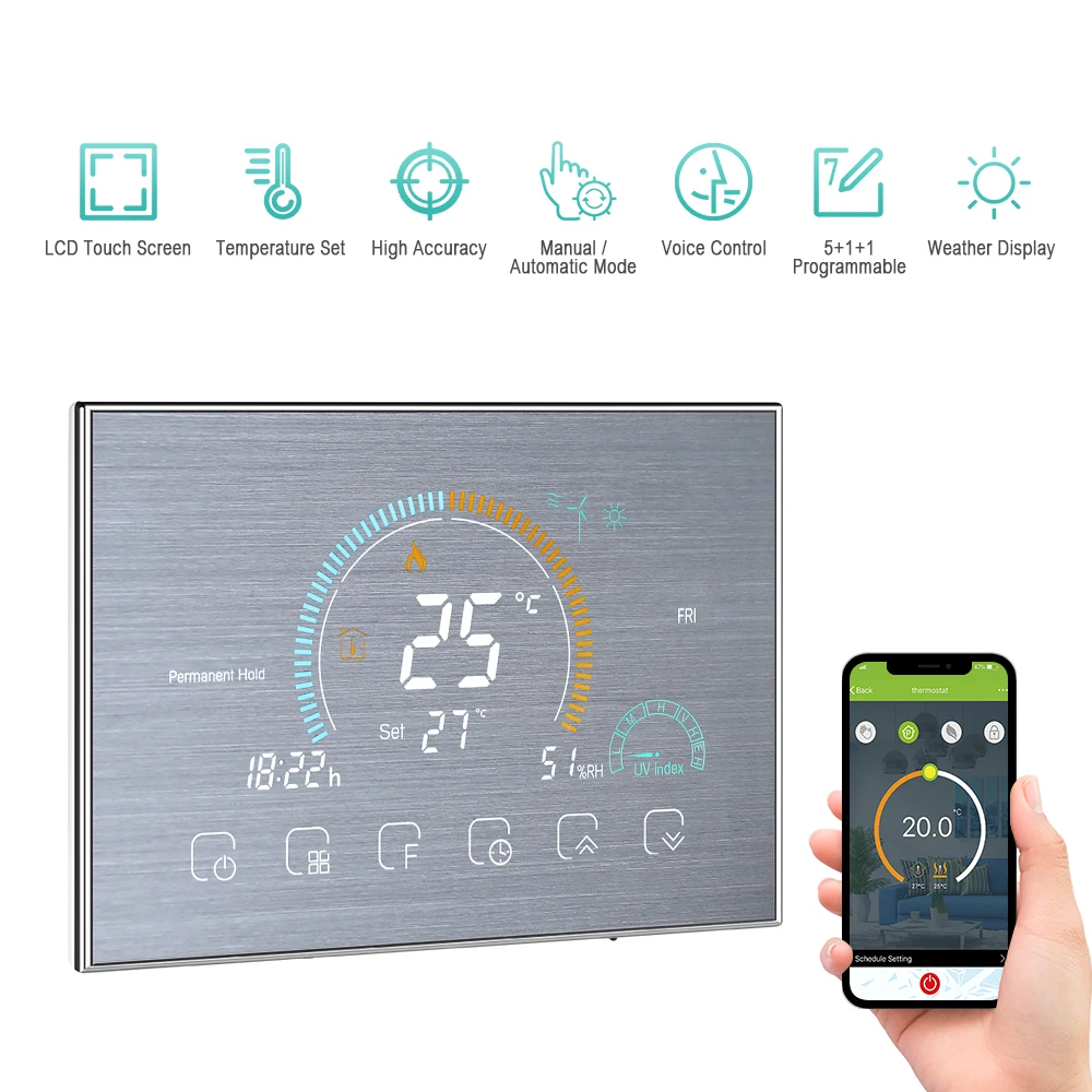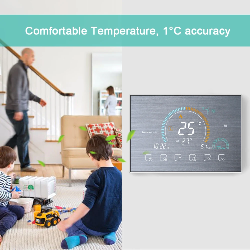 Умный термостат обеспечивает равномерный и удобный контроль температуры через каждую комнату в вашем доме. С технологией, мастерством и качественными материалами, чтобы предложить вам безопасный, надежный термостат в сочетании с гладким, современным дизайном.