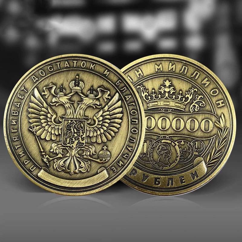 Это копия памятной монеты в 1 миллион рублей в России с двойной рельефной поверхностью.