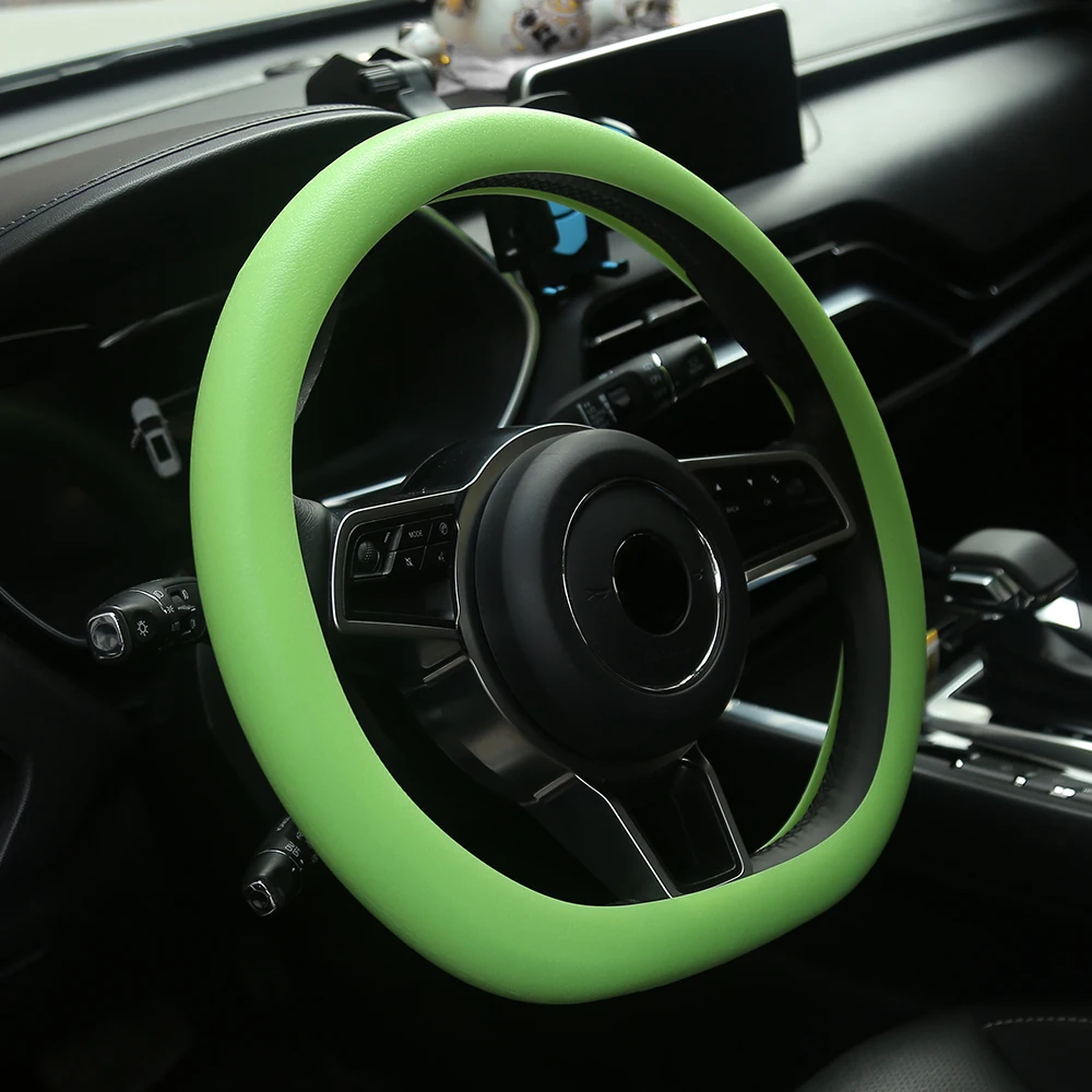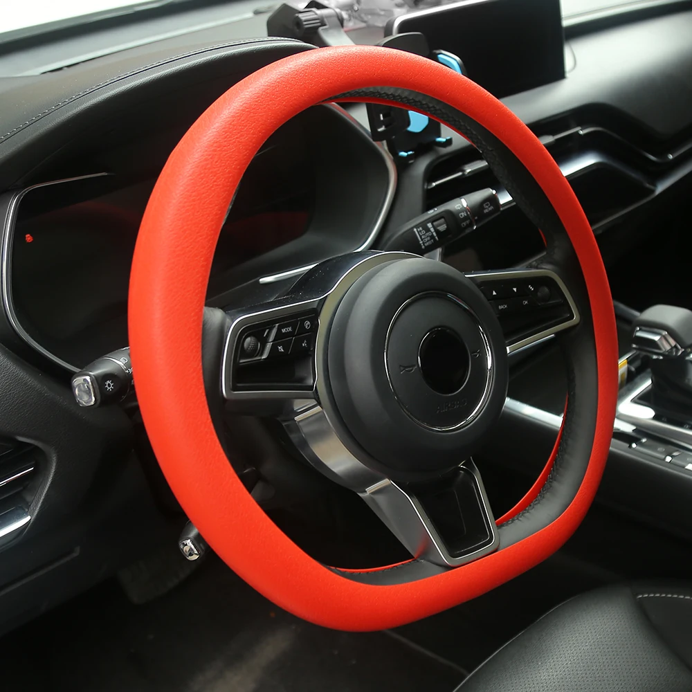 Высококачественный силикон Силиконовая Оплетка на руль удобна, воздухопроницаема и не скользит, легко моется, сохраняет прохладу и чистоту, чтобы Вождение было веселым. Сценарии использования Этот премиальный продукт является отличным подарком, например, на день рождения, Рождество или любой другой подходящий случай. Простота установки Любой взрослый может легко установить чехол на руль без каких-либо инструментов. Высококачественный чехол на руль добавляет чувство стиля в салон вашего автомобиля! Руль 33-38 см универсален, сохраняя конфиденциальность руля автомобиля.