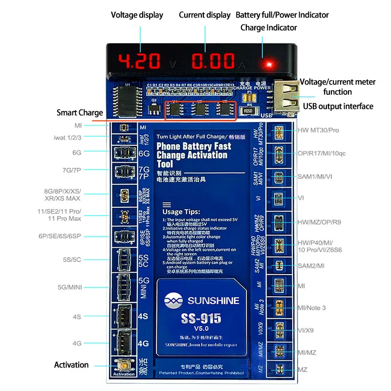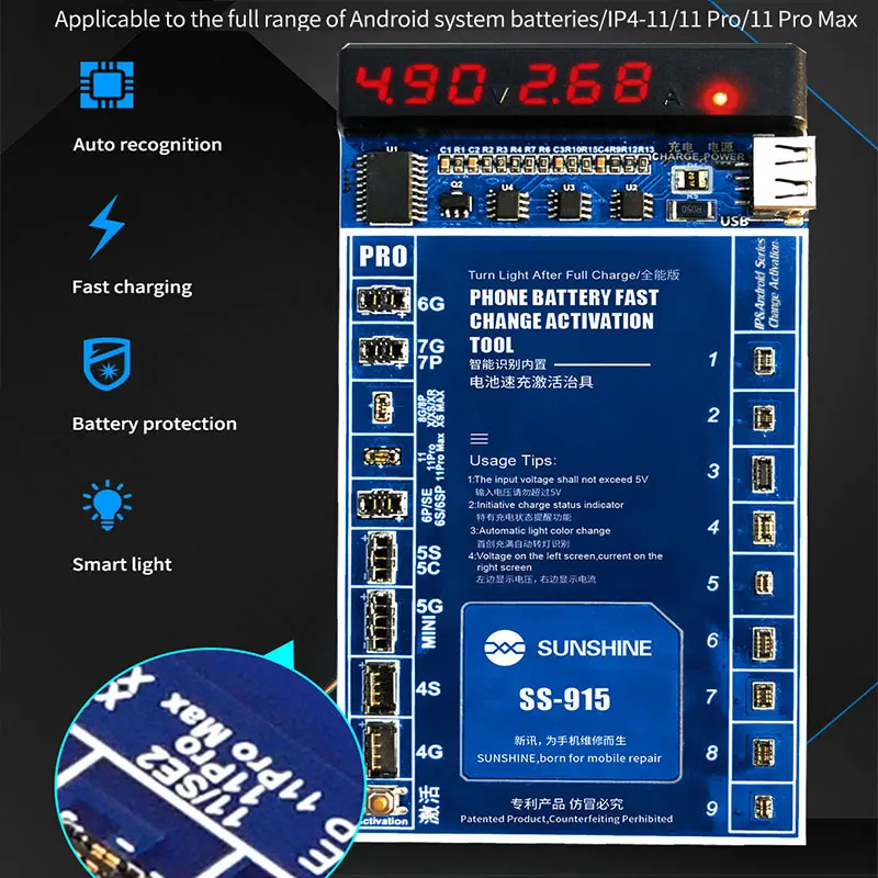 Тестовая панель для быстрой зарядки аккумуляторов iPhone 11/11Pro/11 Pro Max/X/XS MAX/XR/4/5 // 5C/SE 2/6/6P/тестер для аккумуляторов 6s/6SP/7/7P/8/8 Plus для iphone 1, 2, 3, Samsung, xiaomi, Huawei, Android, полный спектр мобильный телефон