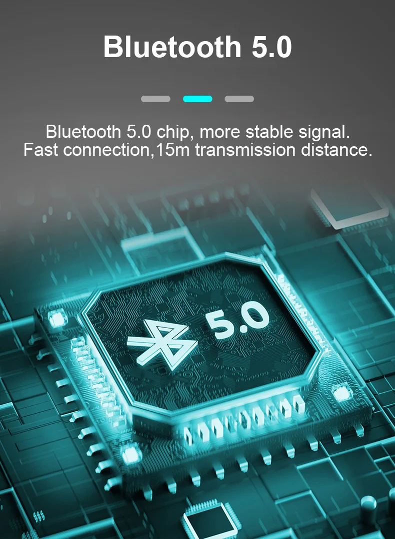 Чип Bluetooth 5,0, более стабильный сигнал. Быстрое соединение, 15 м переходное расстояние.